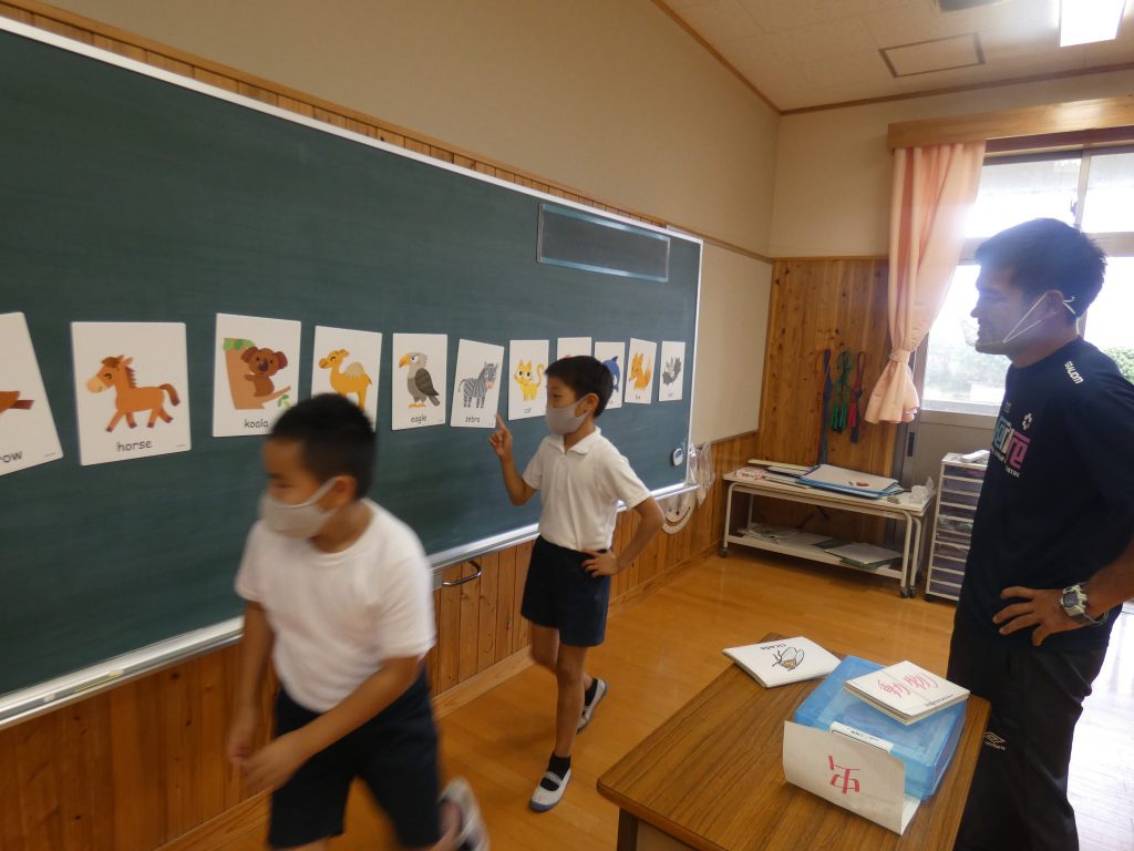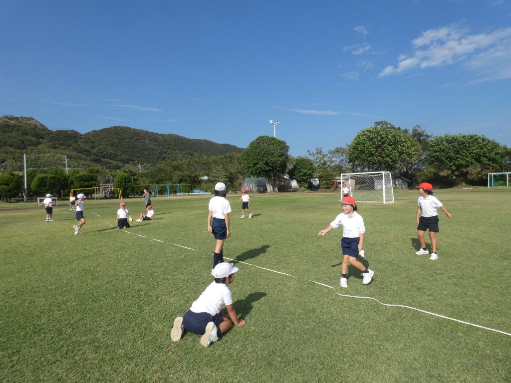 みんな,汗びっしょり。休み時間中校庭を走り回って追いかけっこ。途中低学年に優しく声をかける高学年もいました。遊びの中で上の学年や下の学年とかかわりながら成長する伊関の子たちです。
