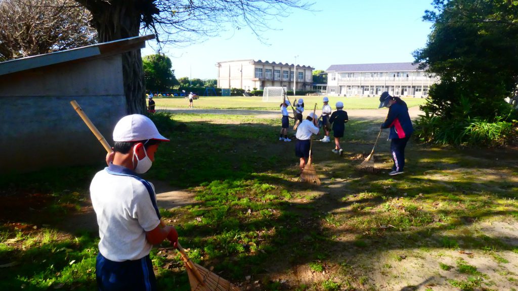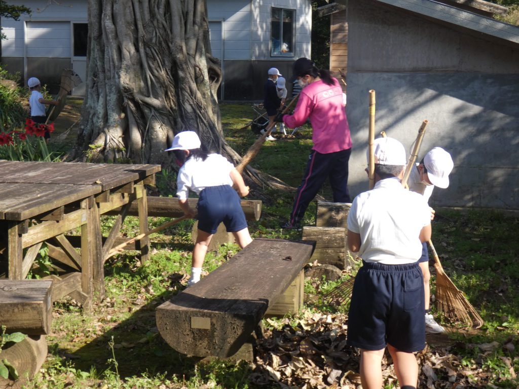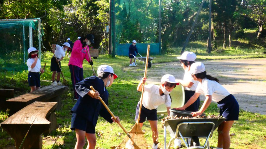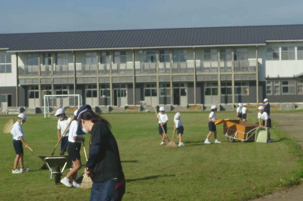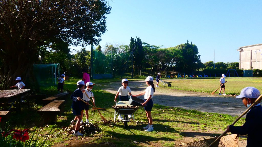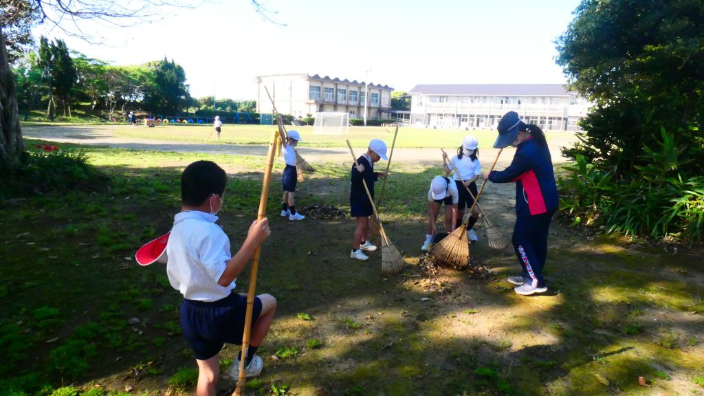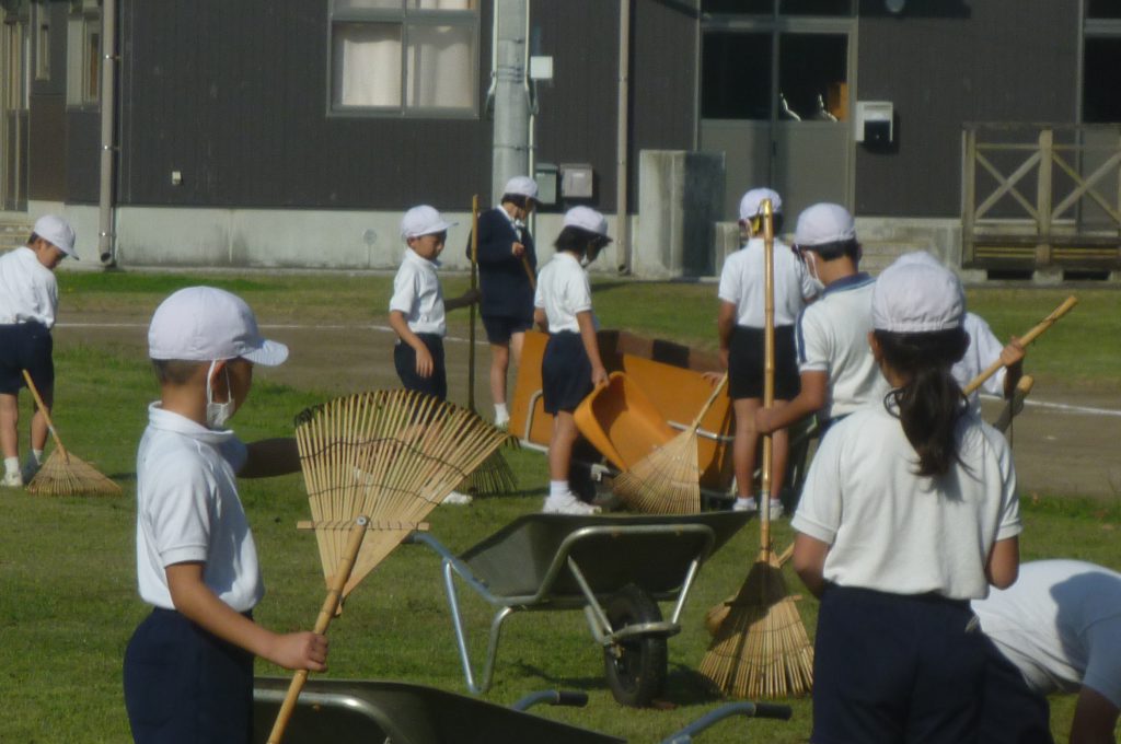 みんなで校庭の落ち葉や除草後の草を集めてきれいにしてくれました。