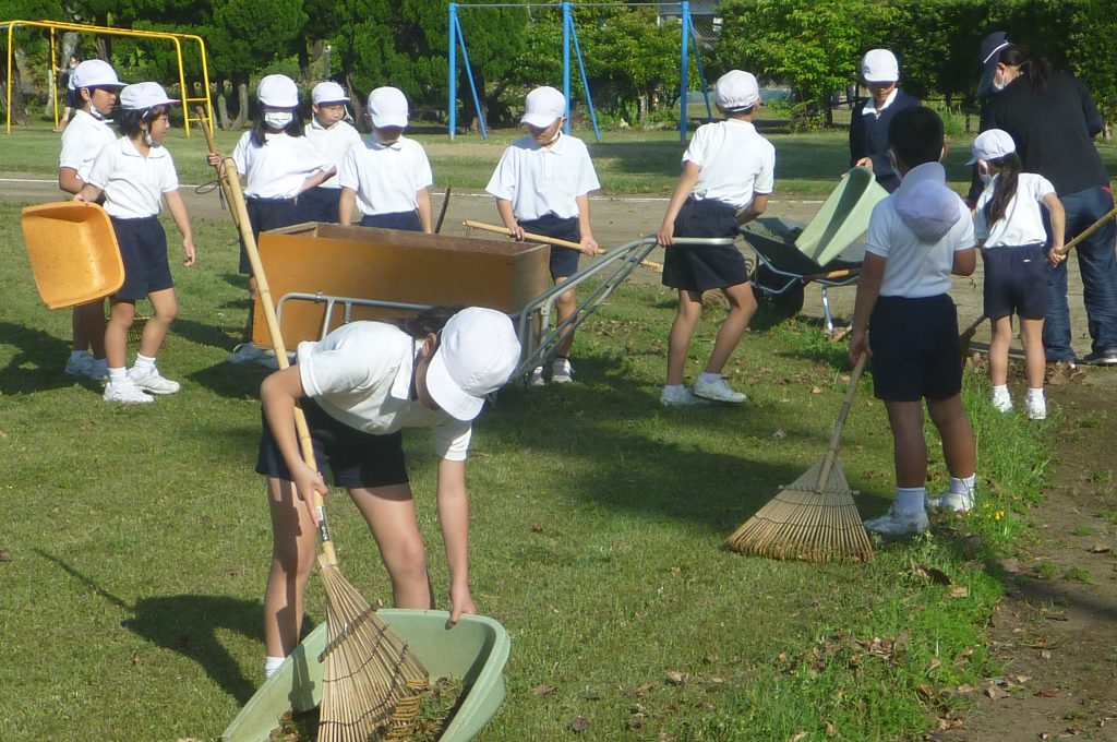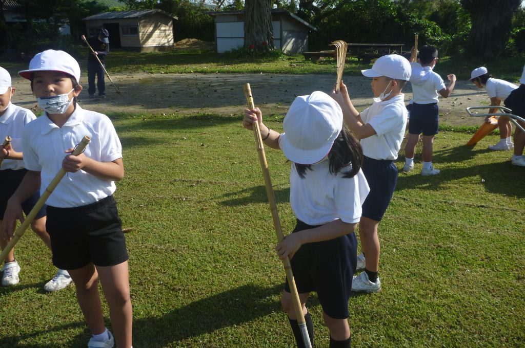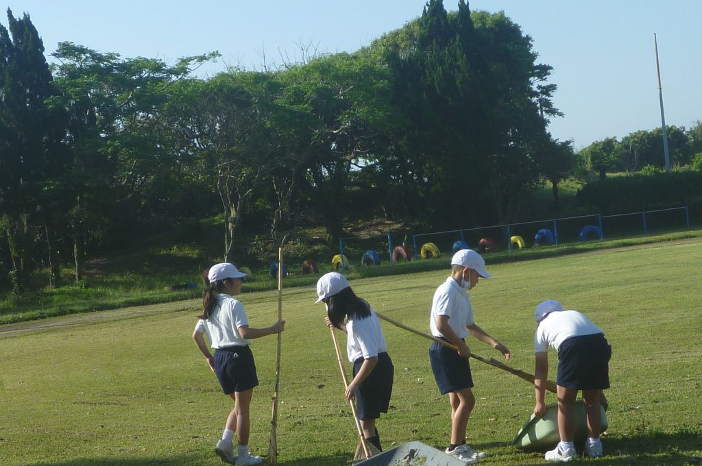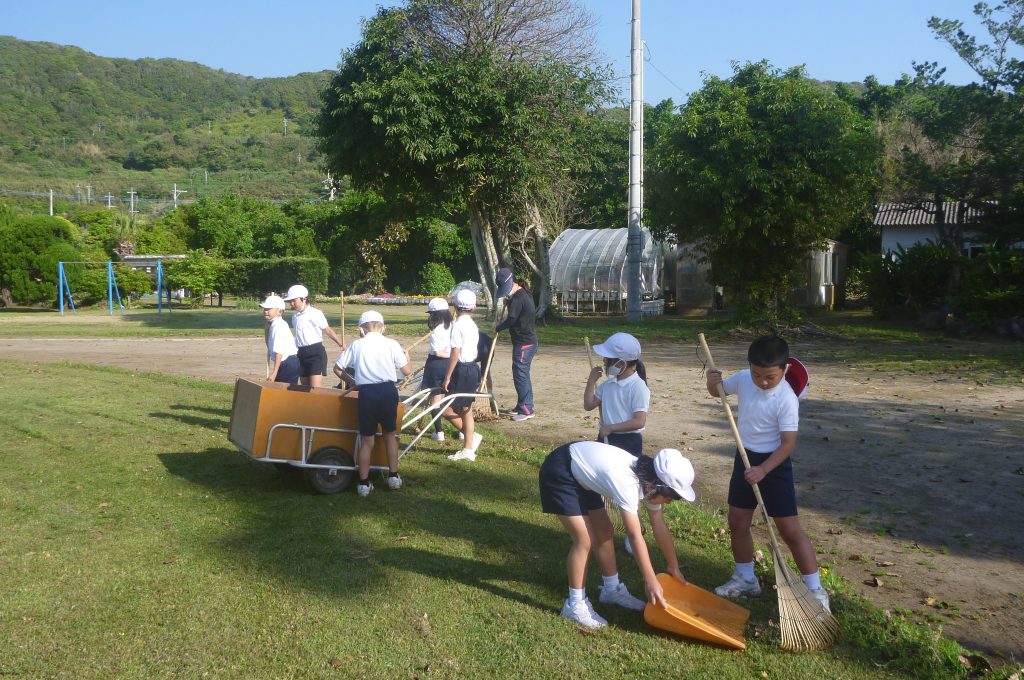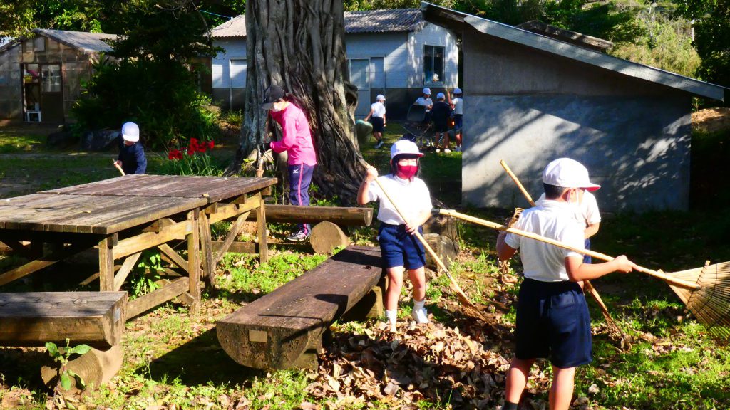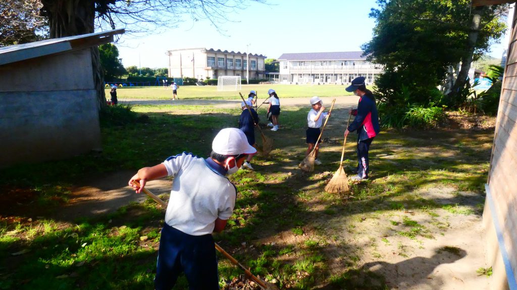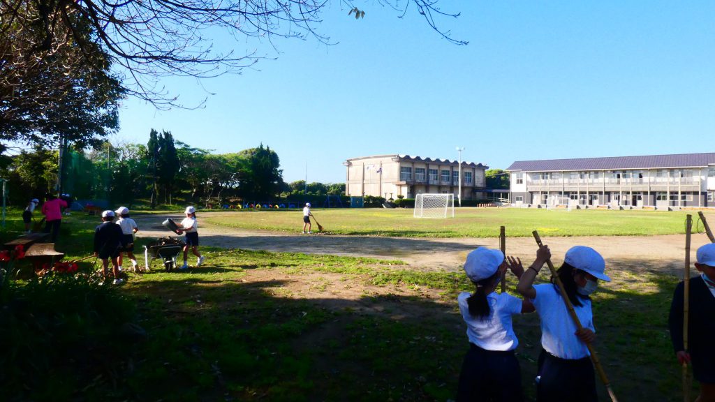 みんなで校庭の落ち葉や除草後の草を集めてきれいにしてくれました。