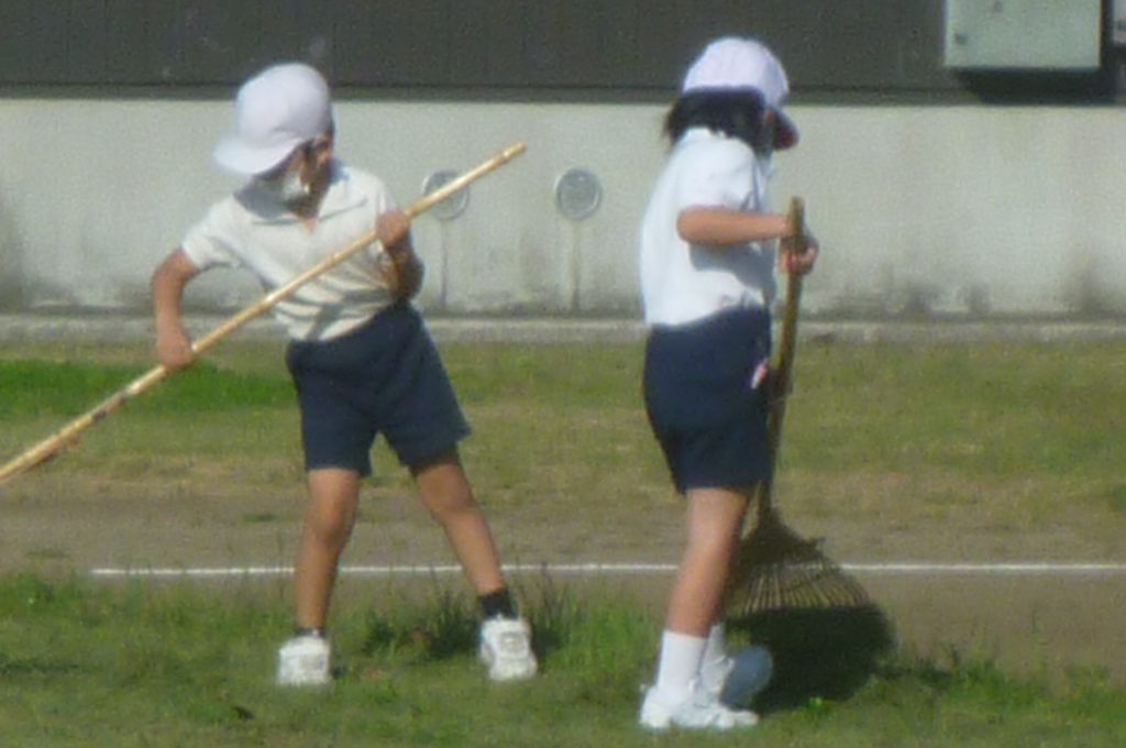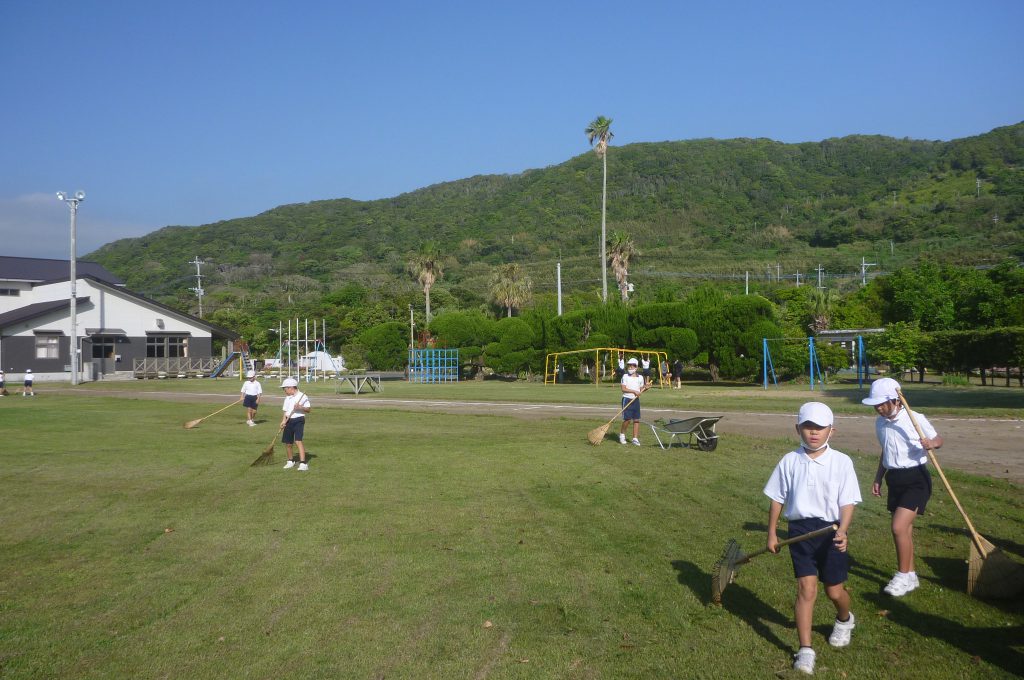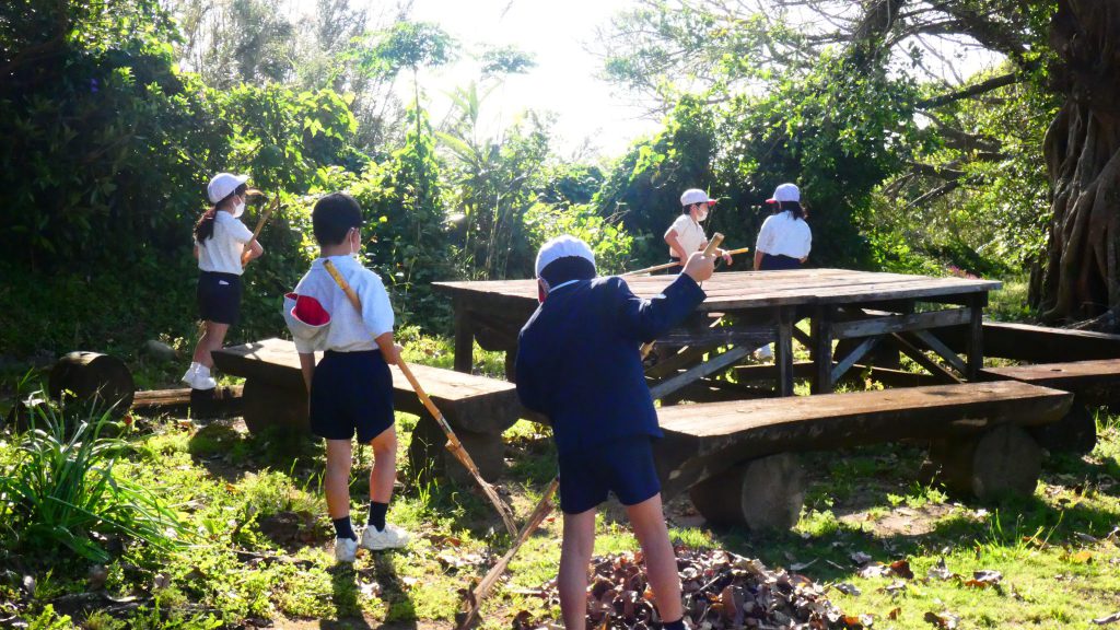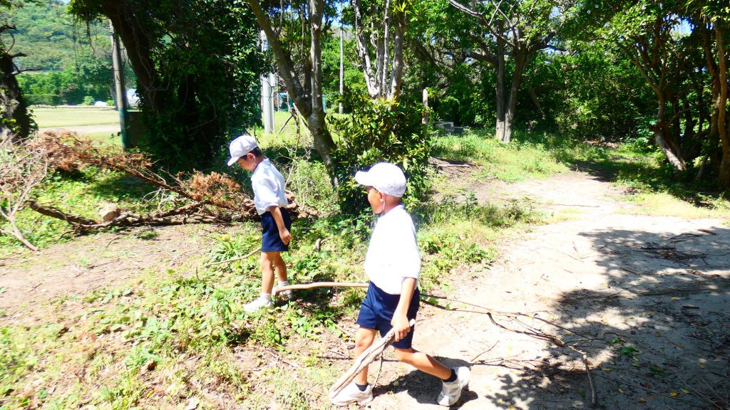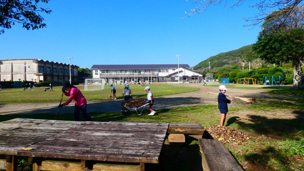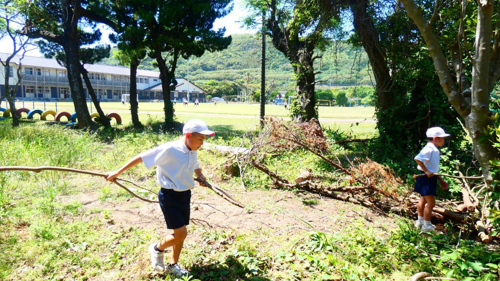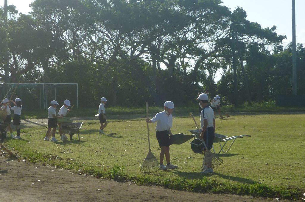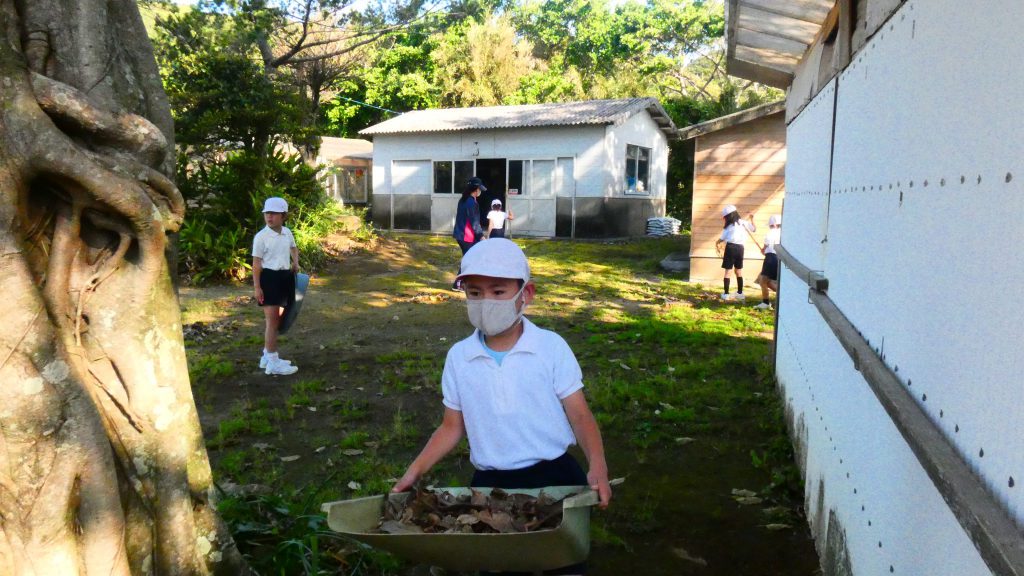 みんなで校庭の落ち葉や除草後の草を集めてきれいにしてくれました。