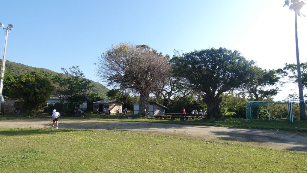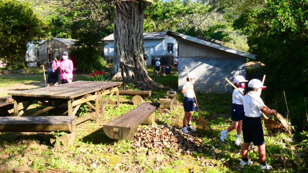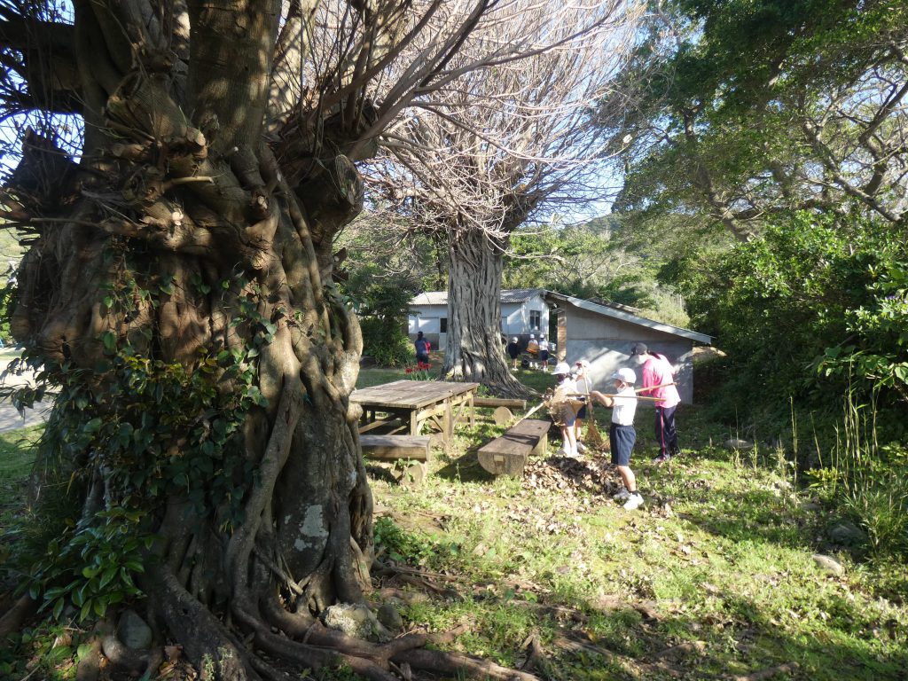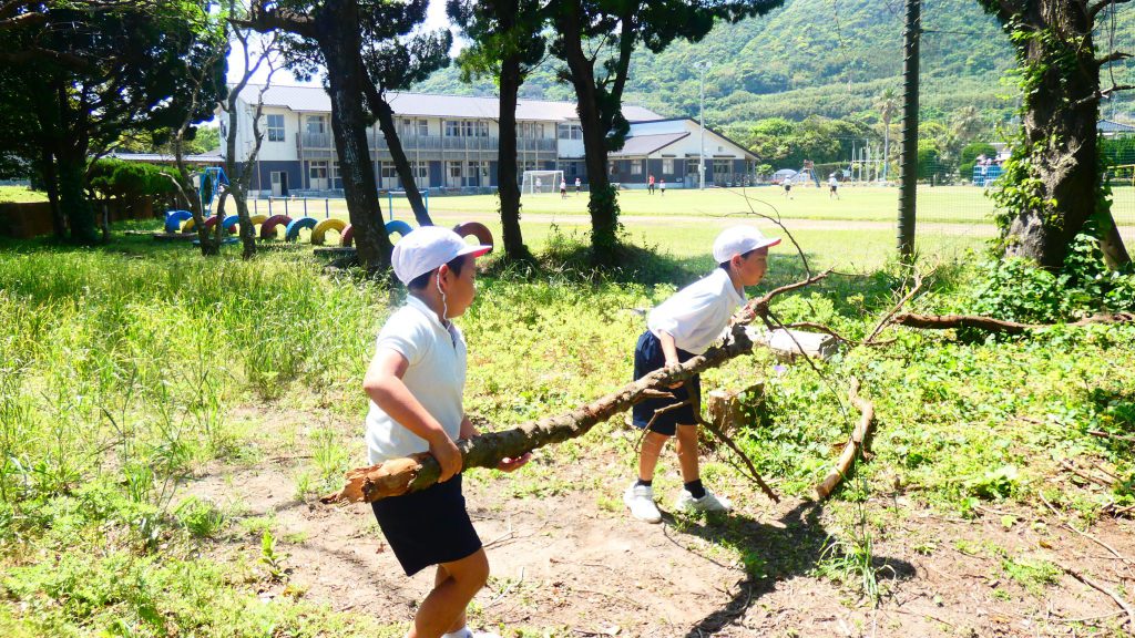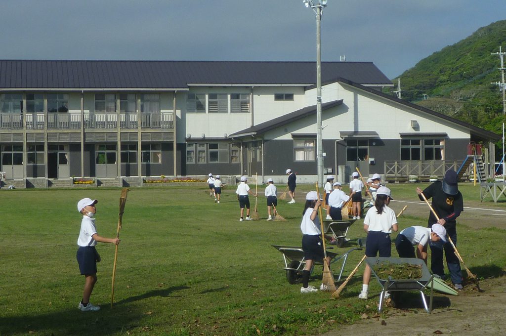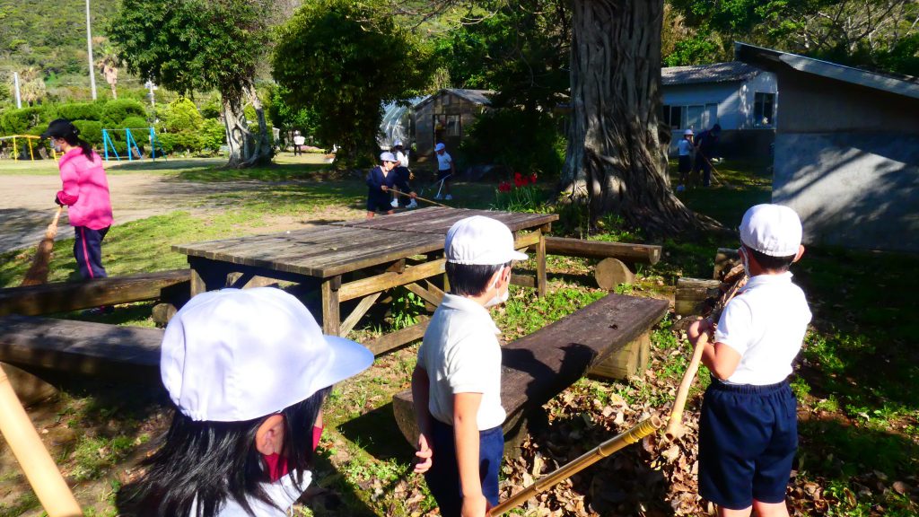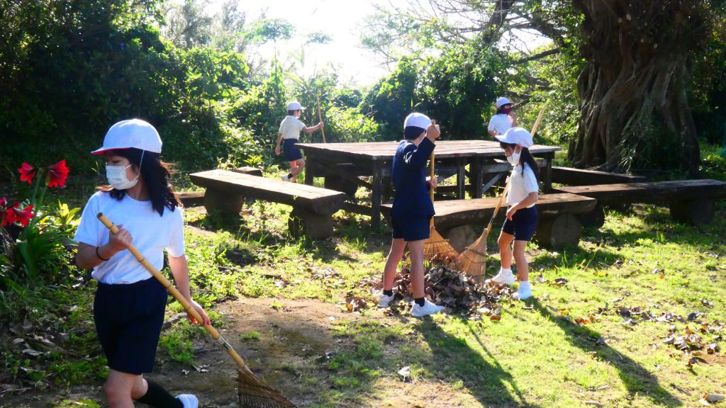 みんなで校庭の落ち葉や除草後の草を集めてきれいにしてくれました。