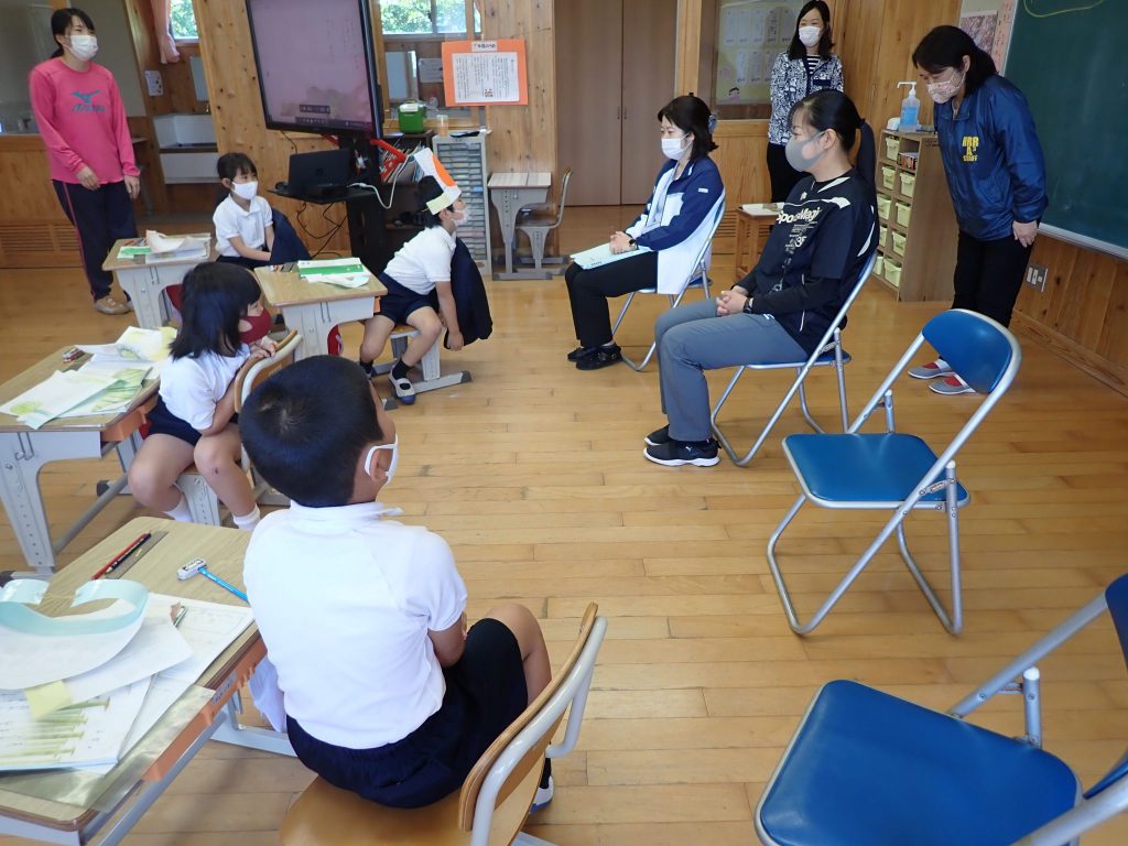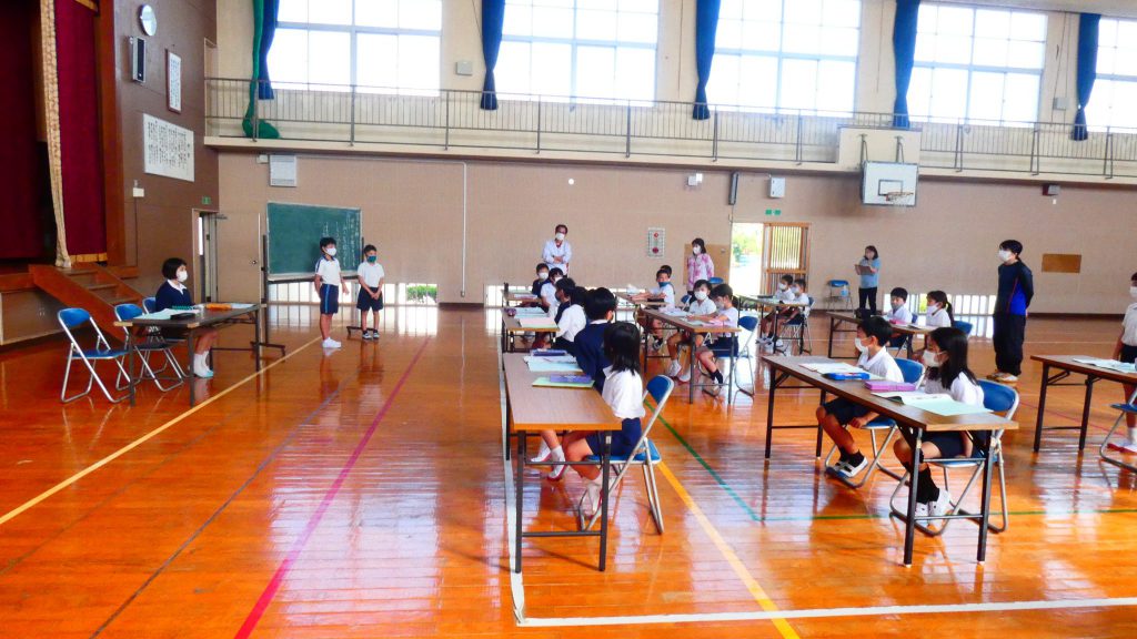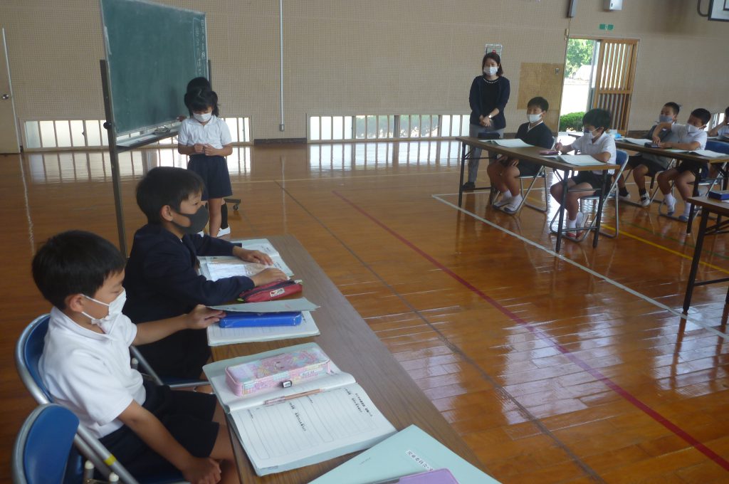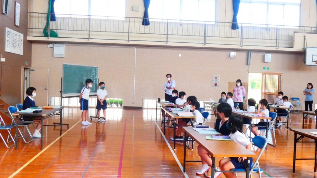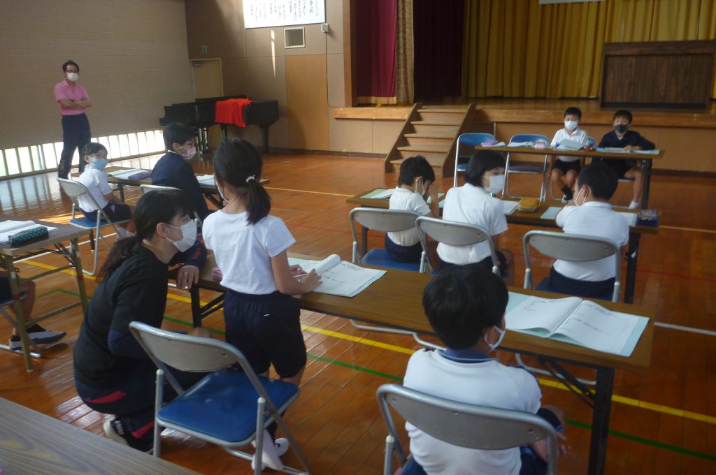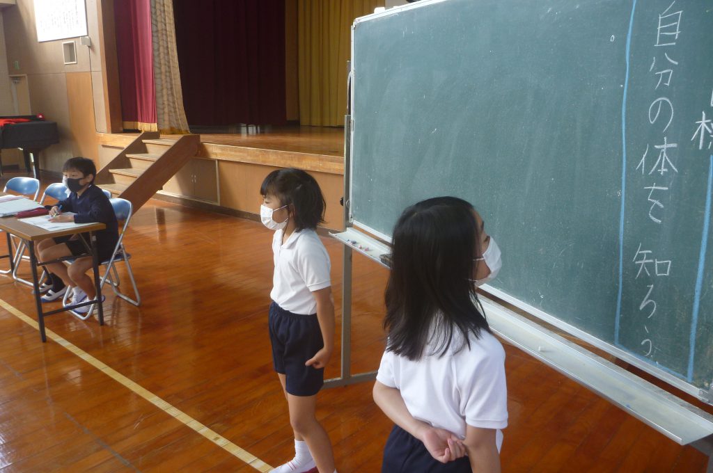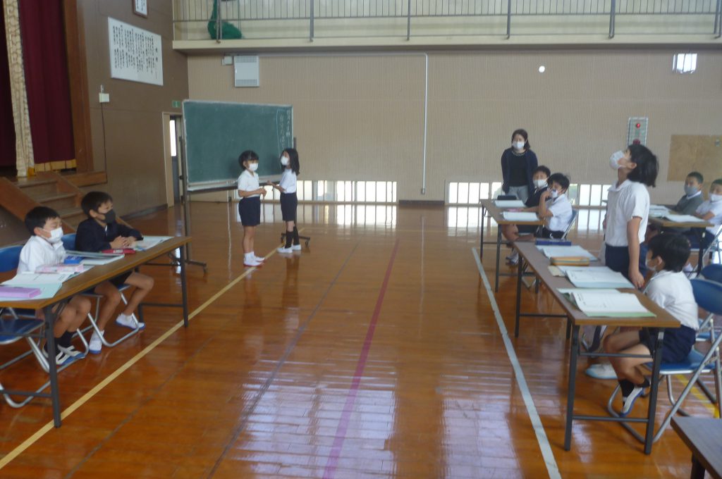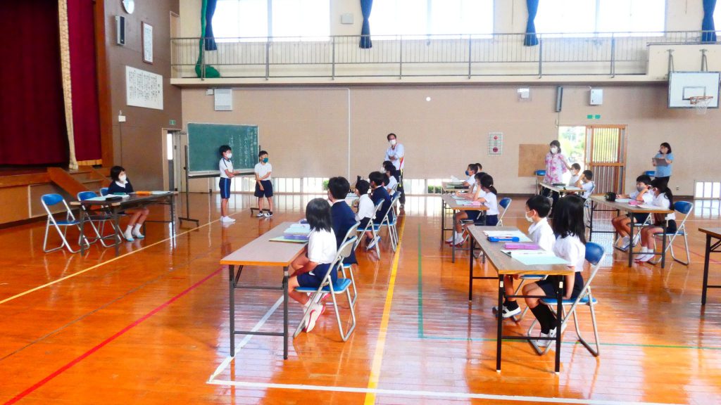 月の保健目標の努力事項をみんなで話し合って決めました。伊関小は3年生から委員会活動に取り組みます。この話合いには2年生も参加。全校で話し合います。