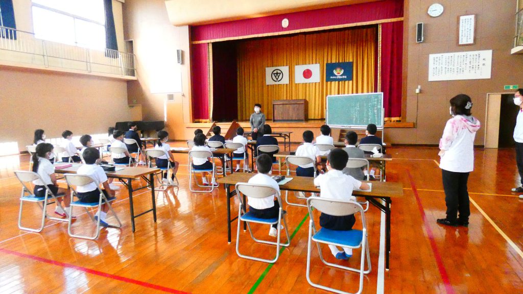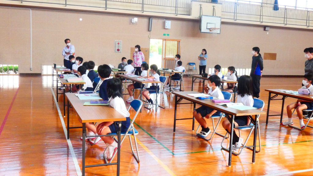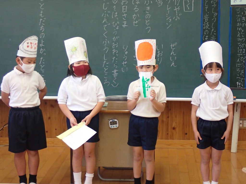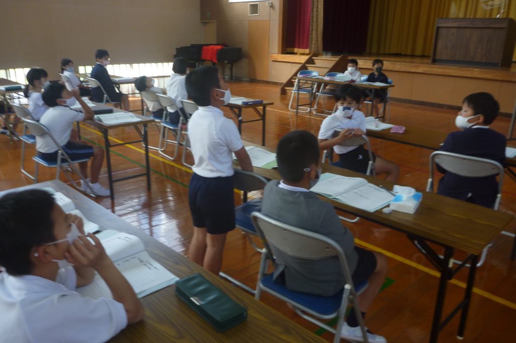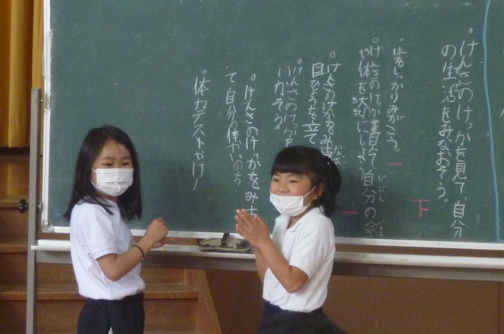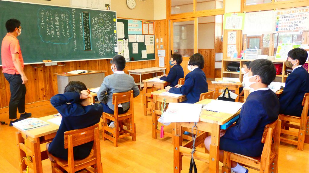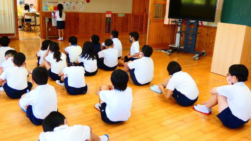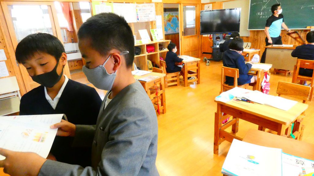 月の保健目標の努力事項をみんなで話し合って決めました。伊関小は3年生から委員会活動に取り組みます。この話合いには2年生も参加。全校で話し合います。