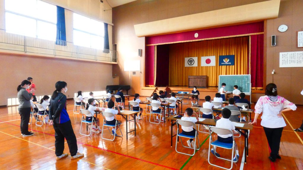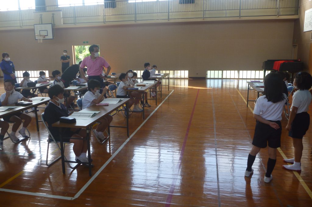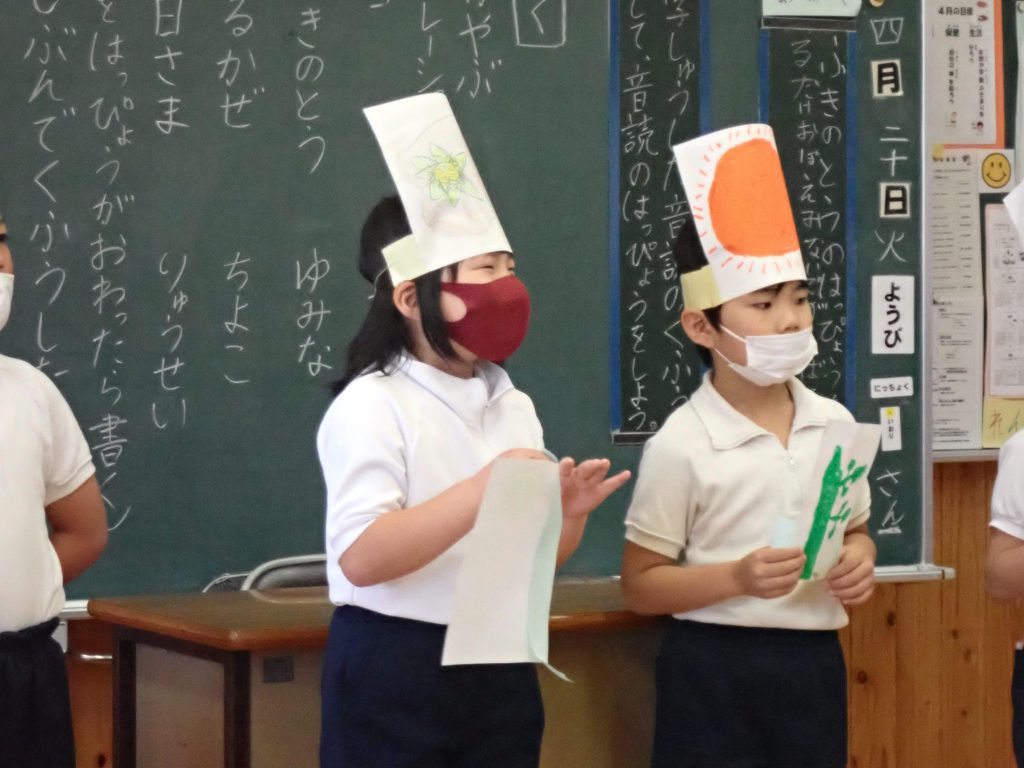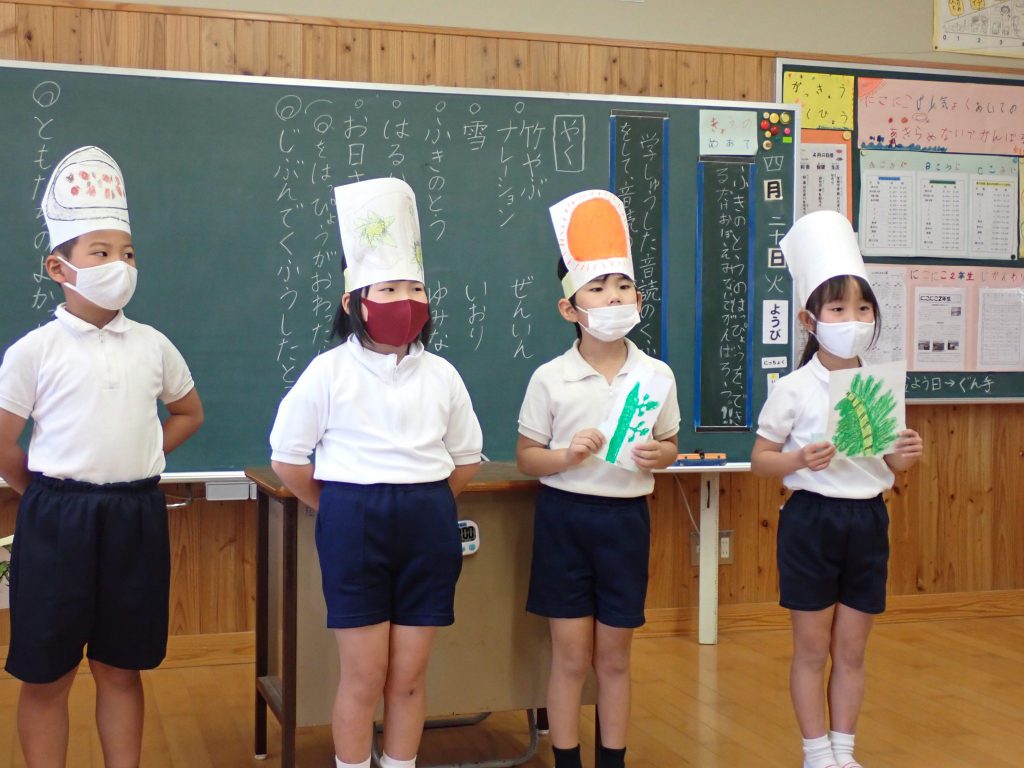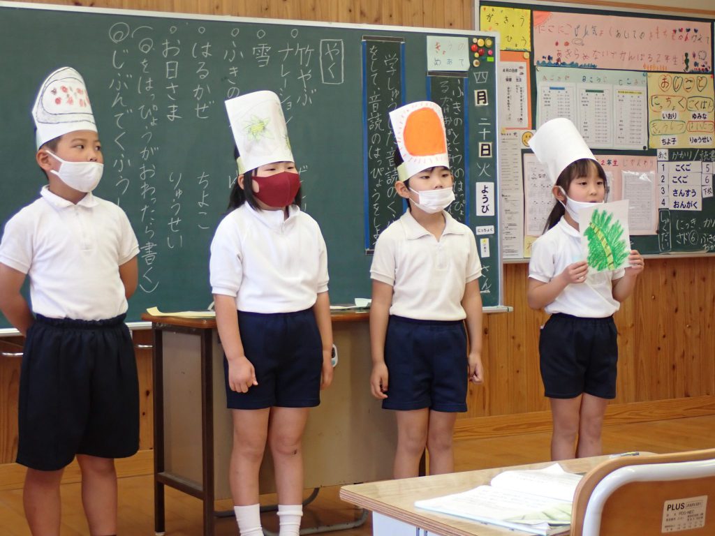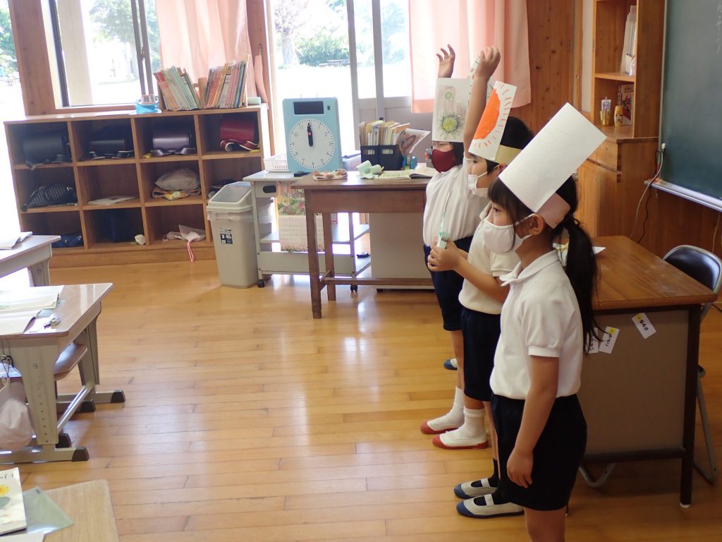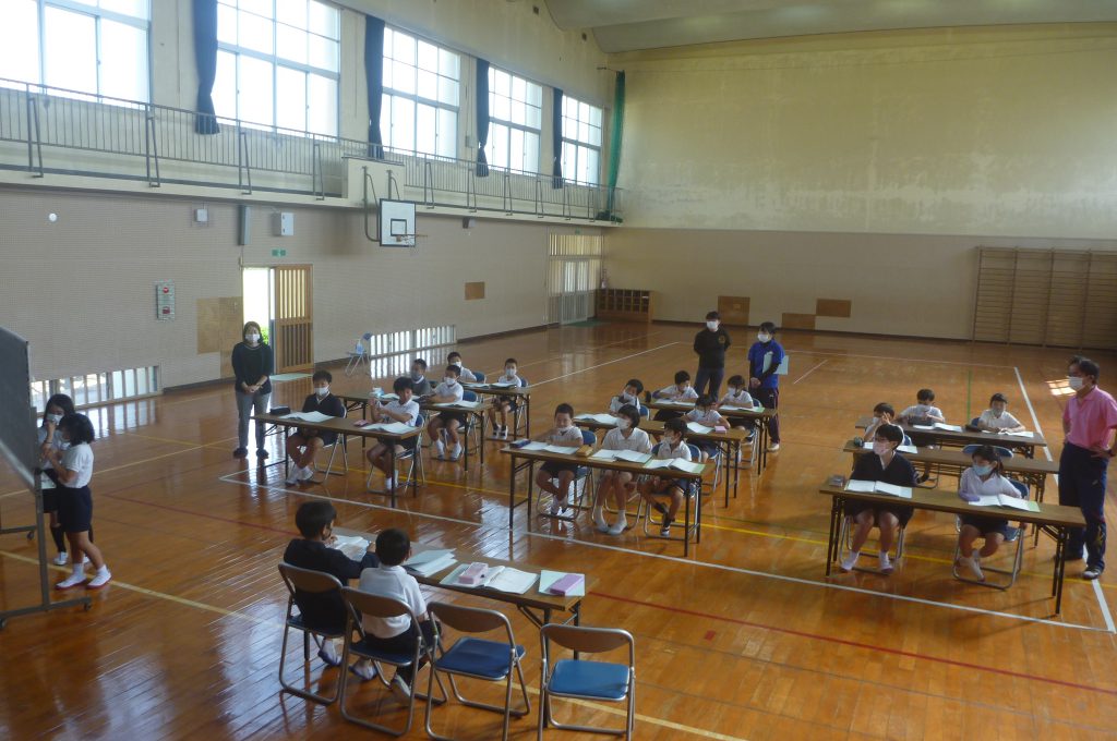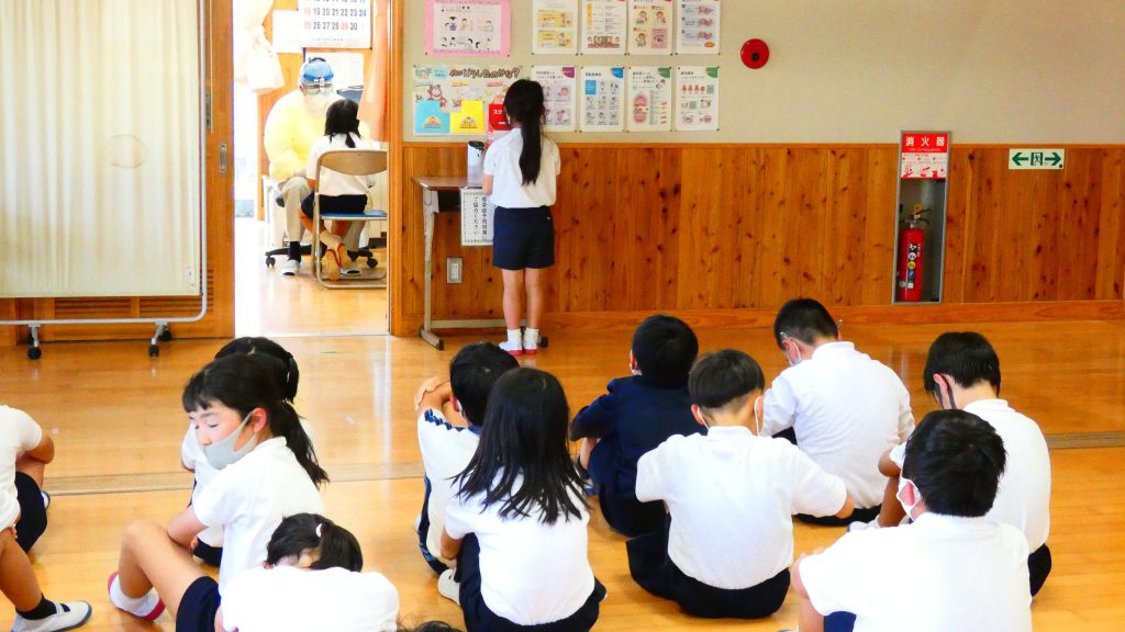 月の保健目標の努力事項をみんなで話し合って決めました。伊関小は3年生から委員会活動に取り組みます。この話合いには2年生も参加。全校で話し合います。