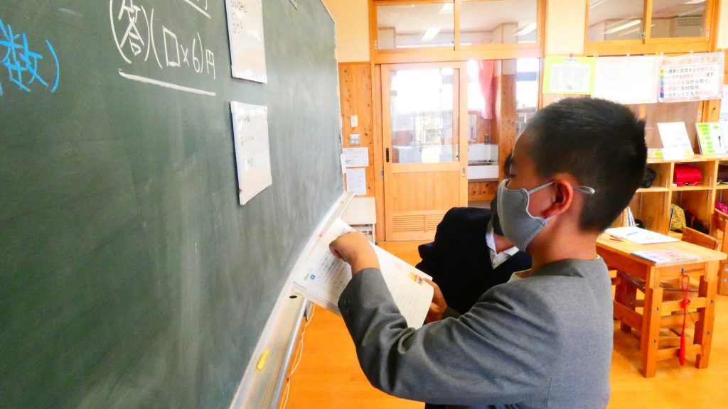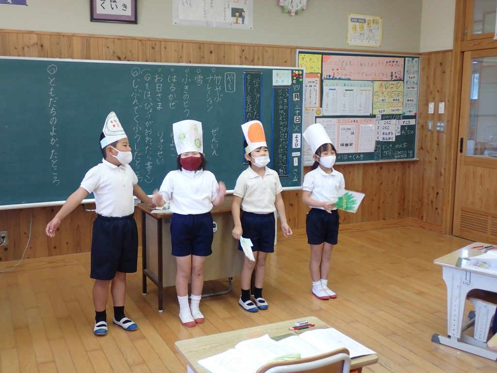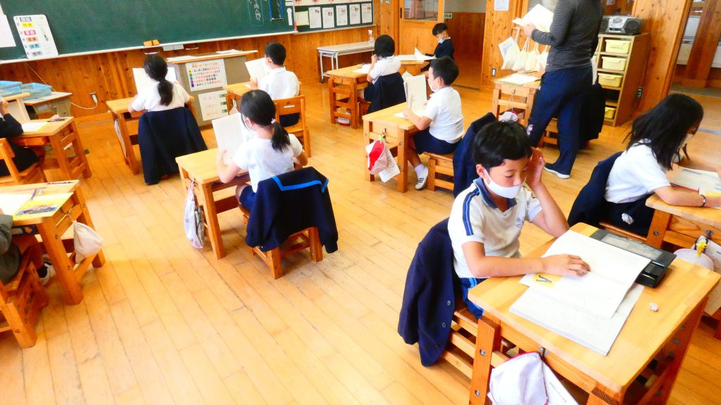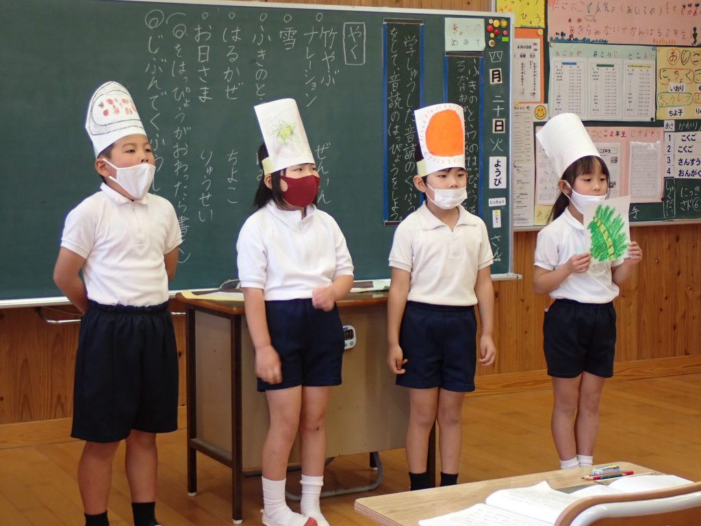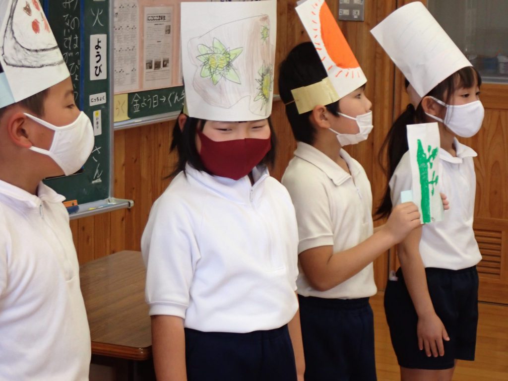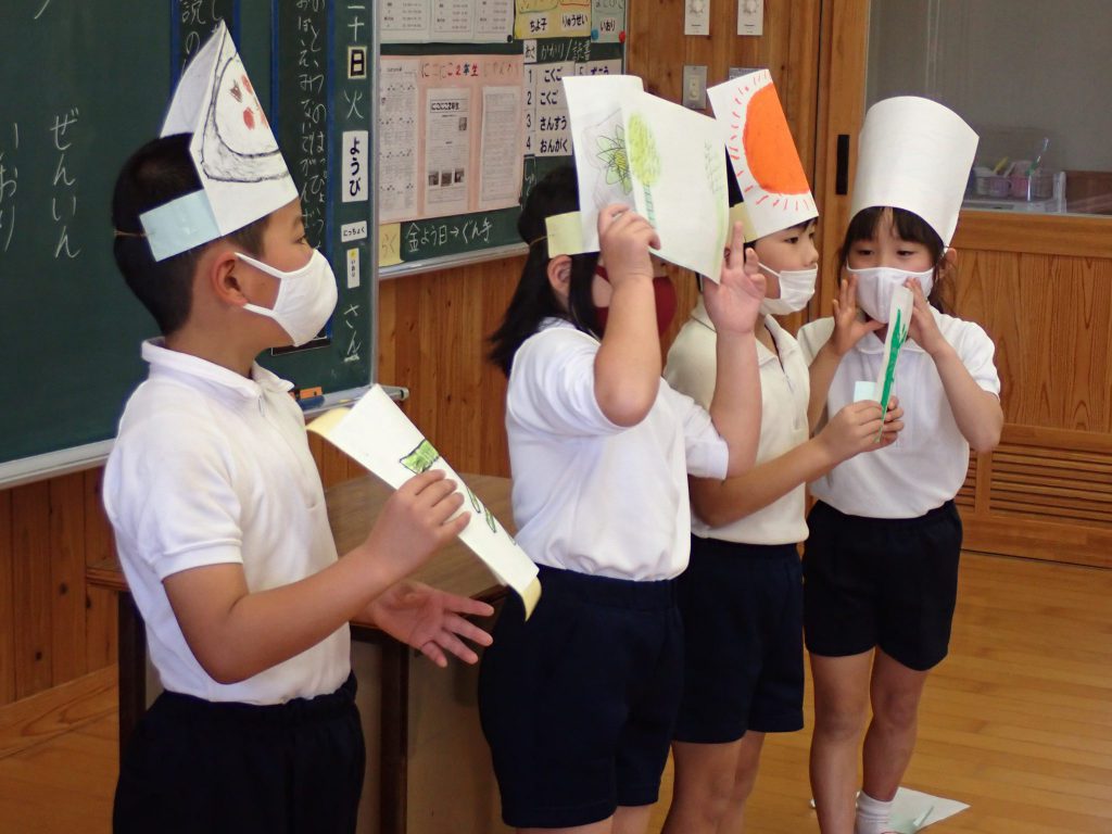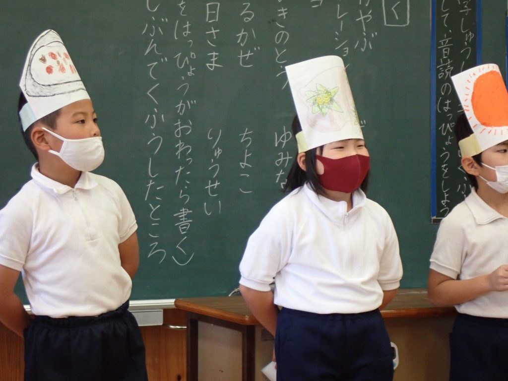 月の保健目標の努力事項をみんなで話し合って決めました。伊関小は3年生から委員会活動に取り組みます。この話合いには2年生も参加。全校で話し合います。