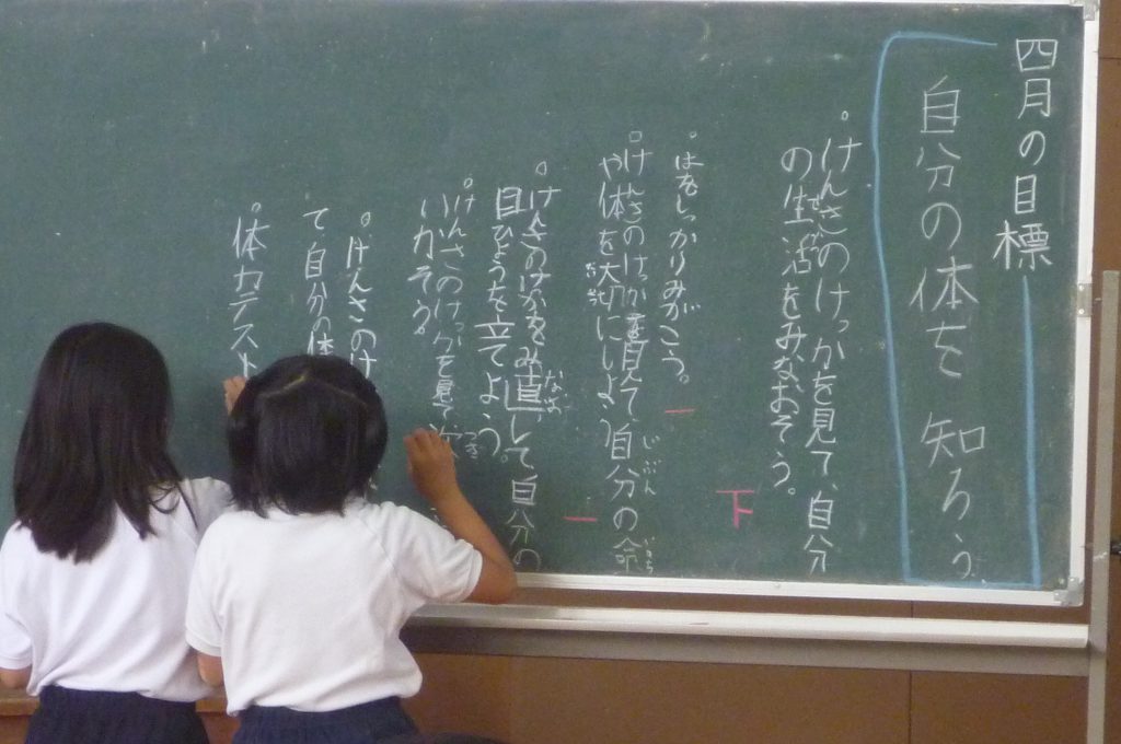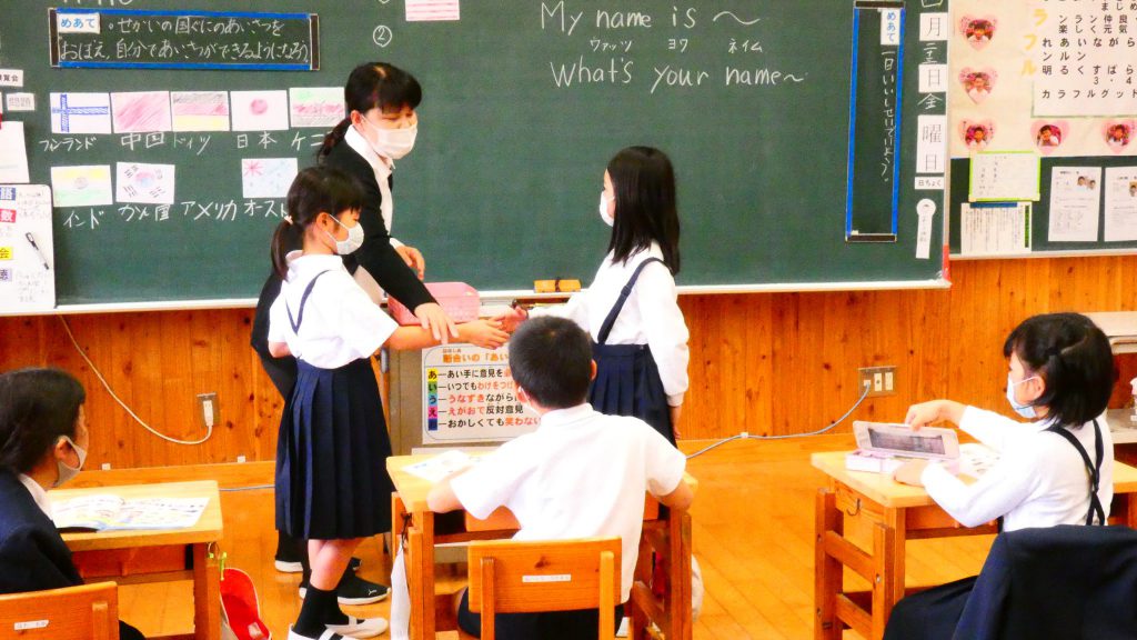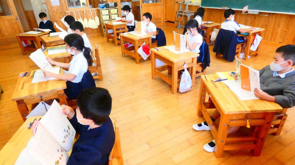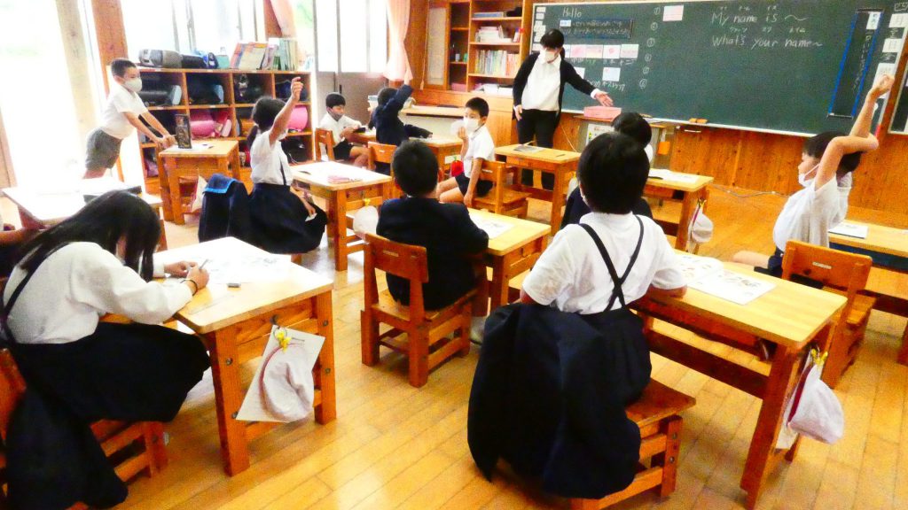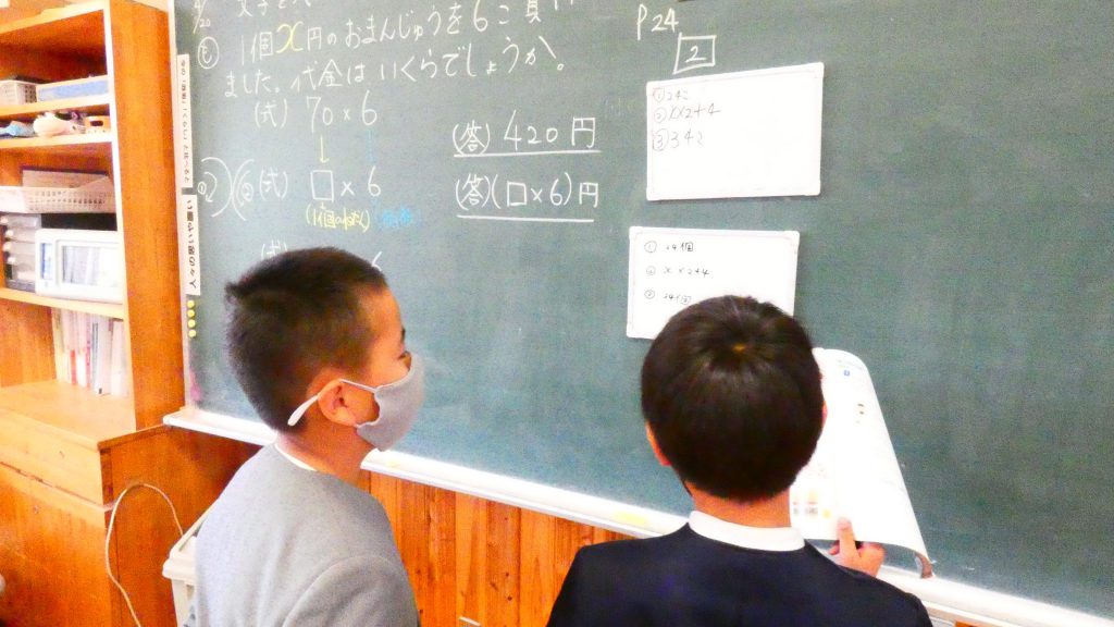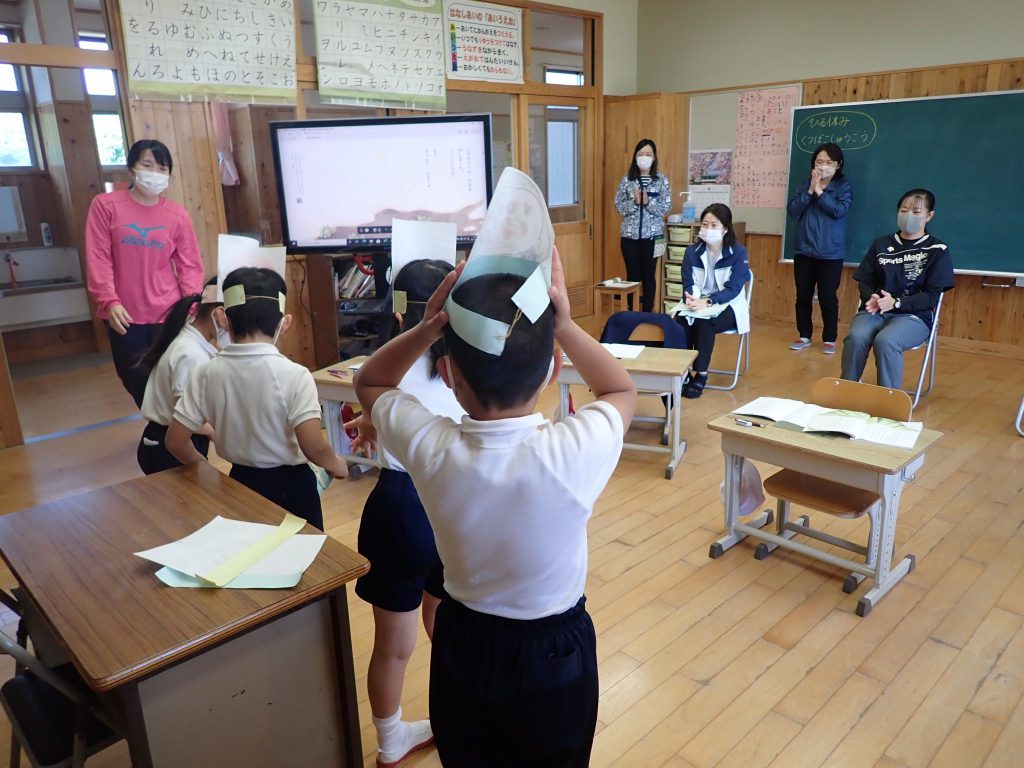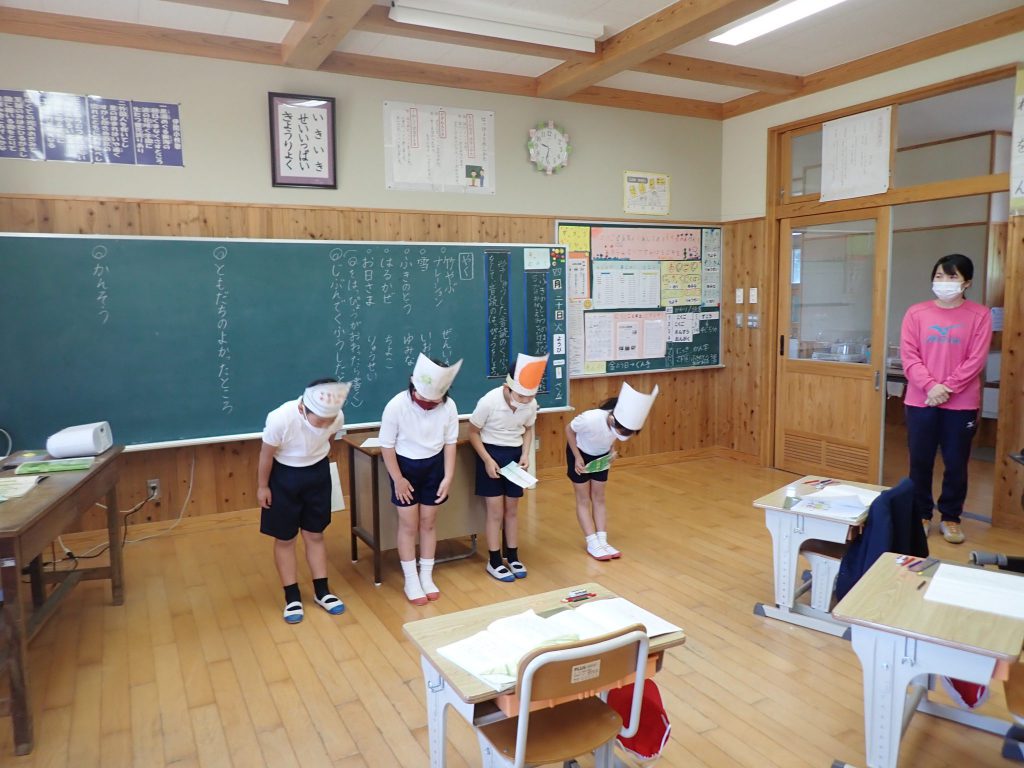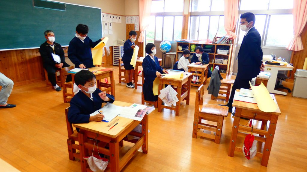 月の保健目標の努力事項をみんなで話し合って決めました。伊関小は3年生から委員会活動に取り組みます。この話合いには2年生も参加。全校で話し合います。