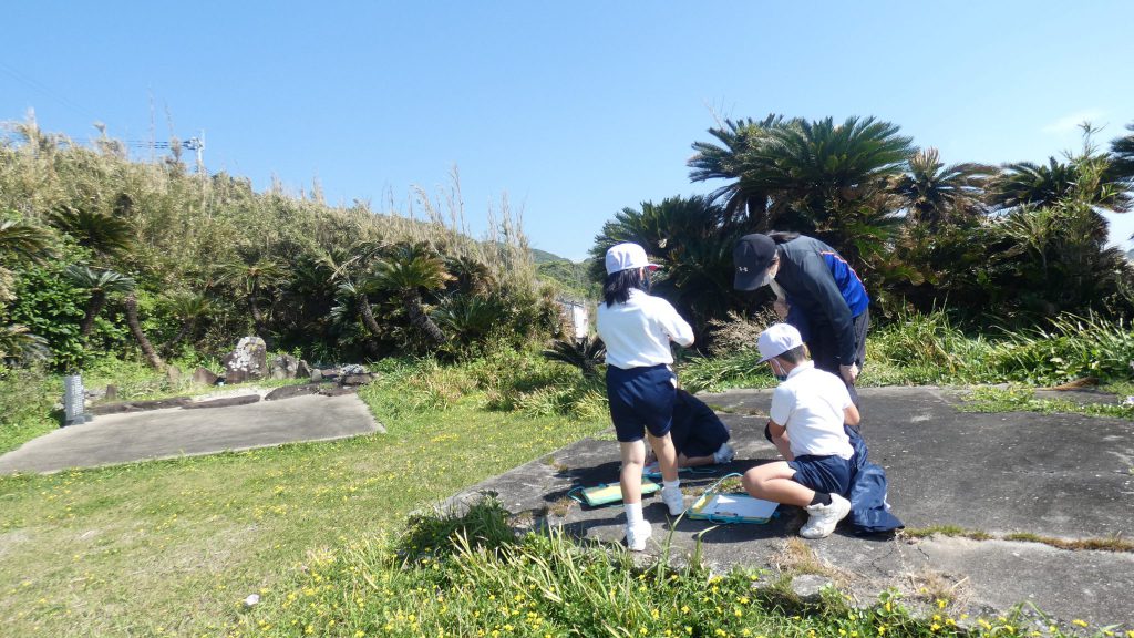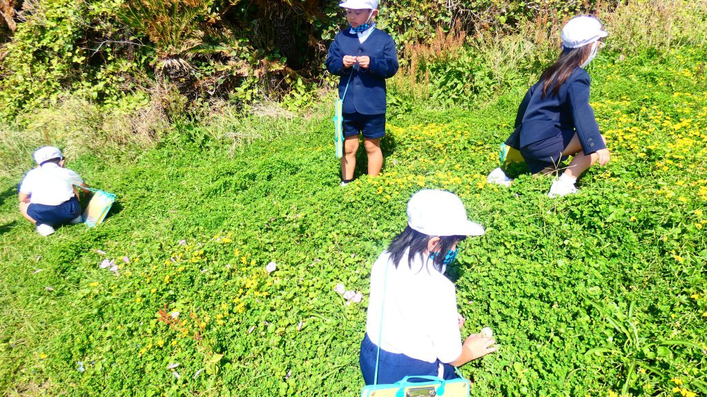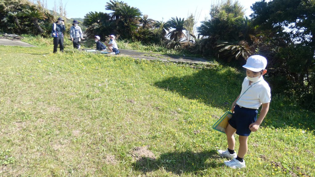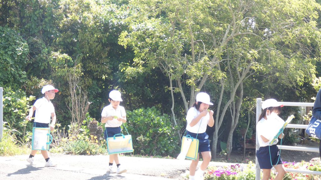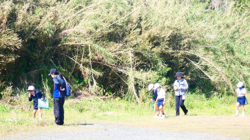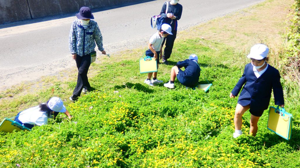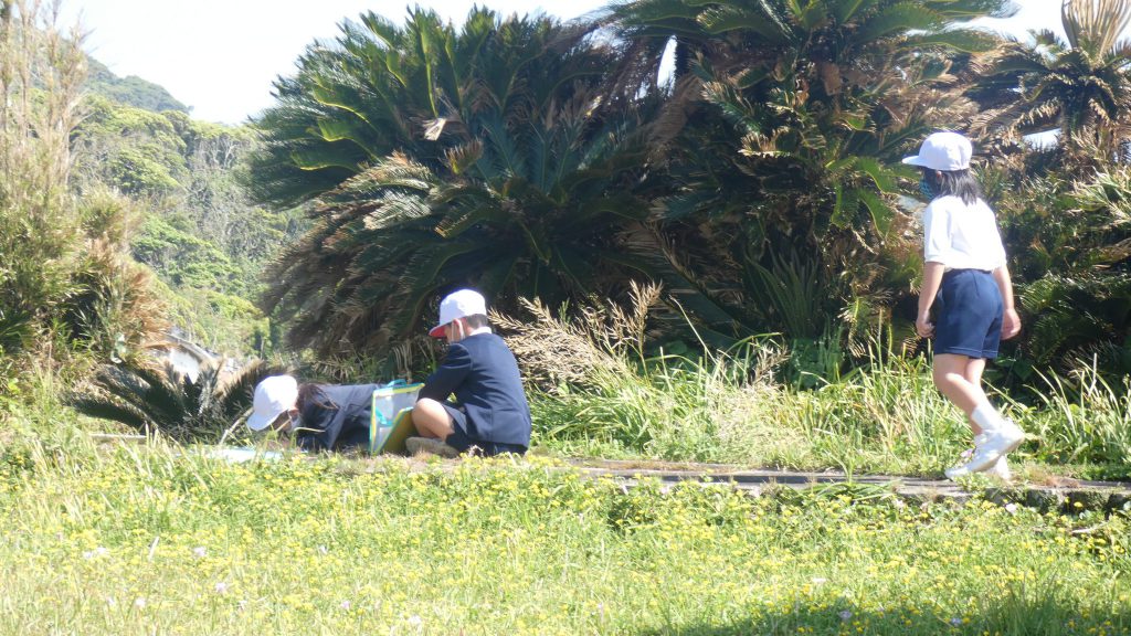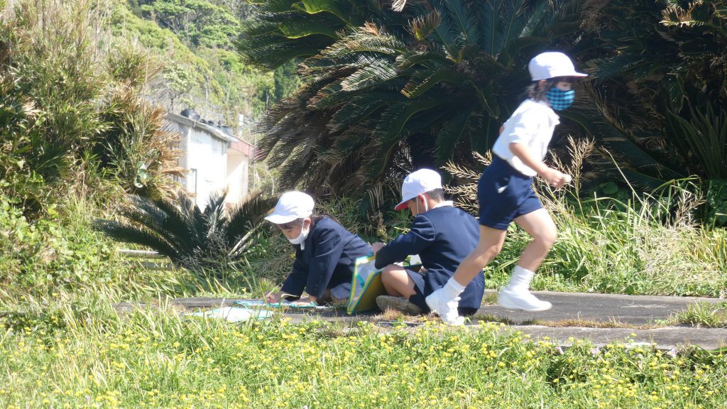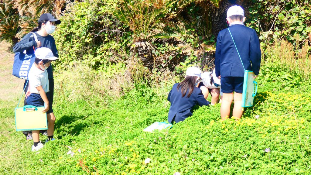 2年生の学習と3・4年生の学習の様子です。4年生は校庭で生き物探し。