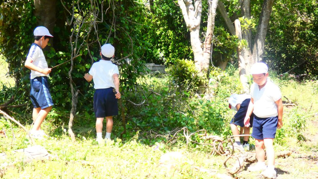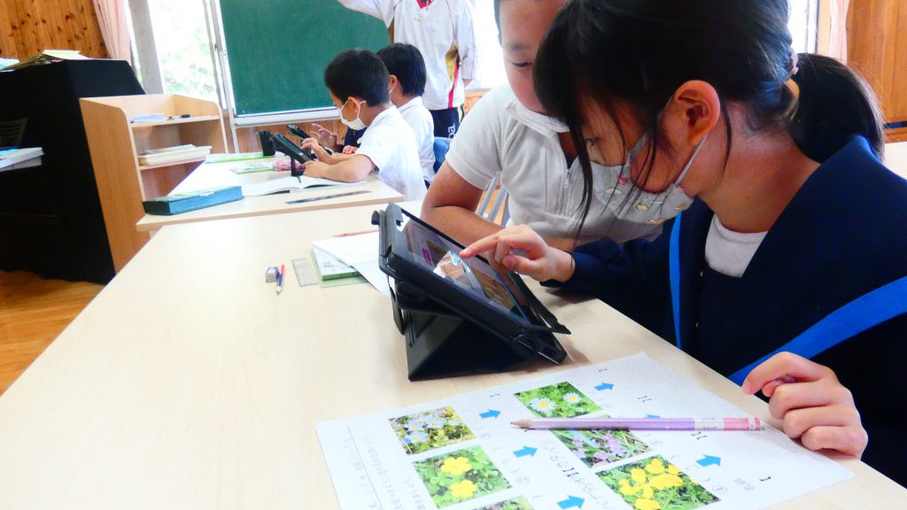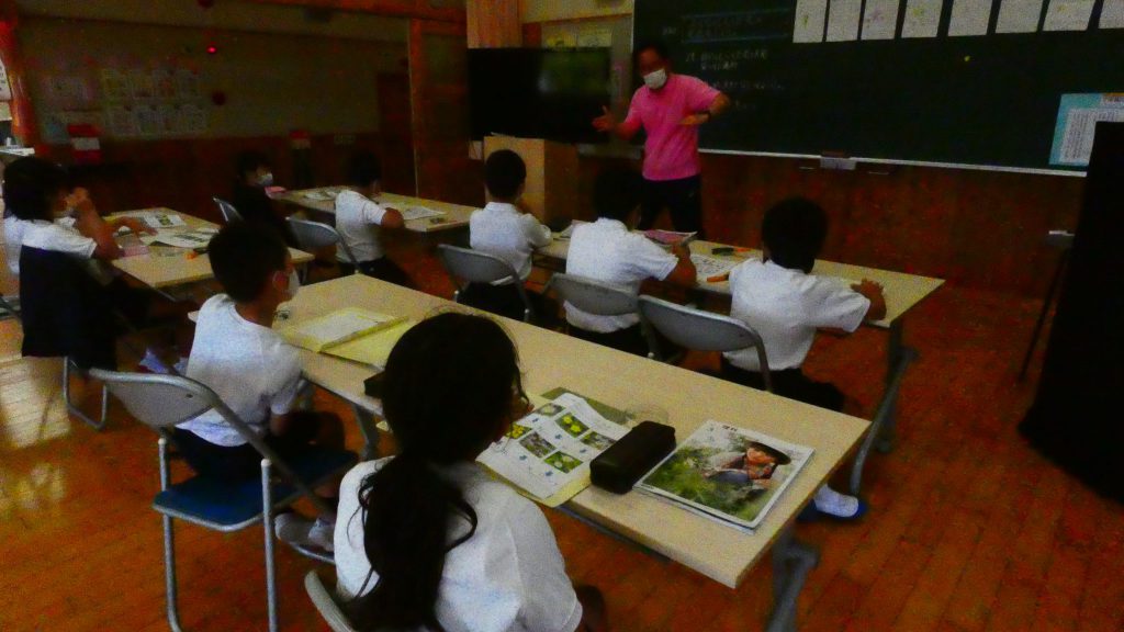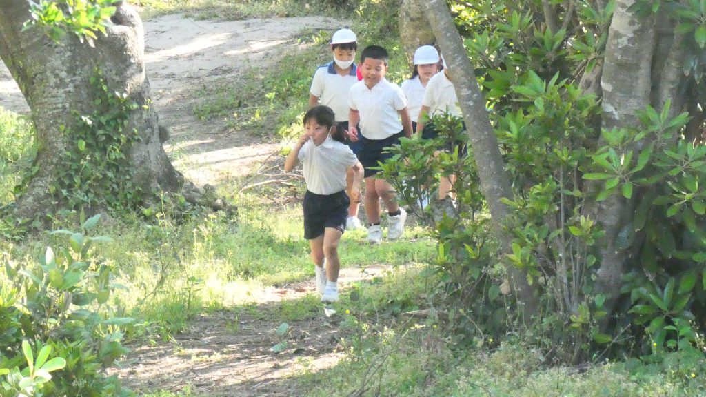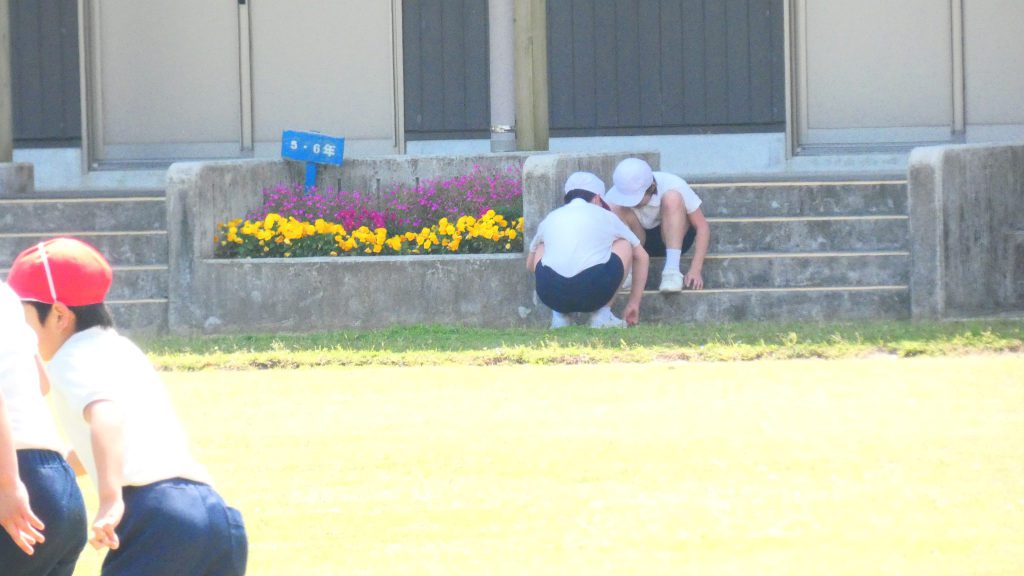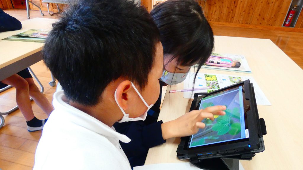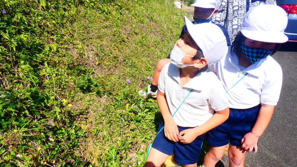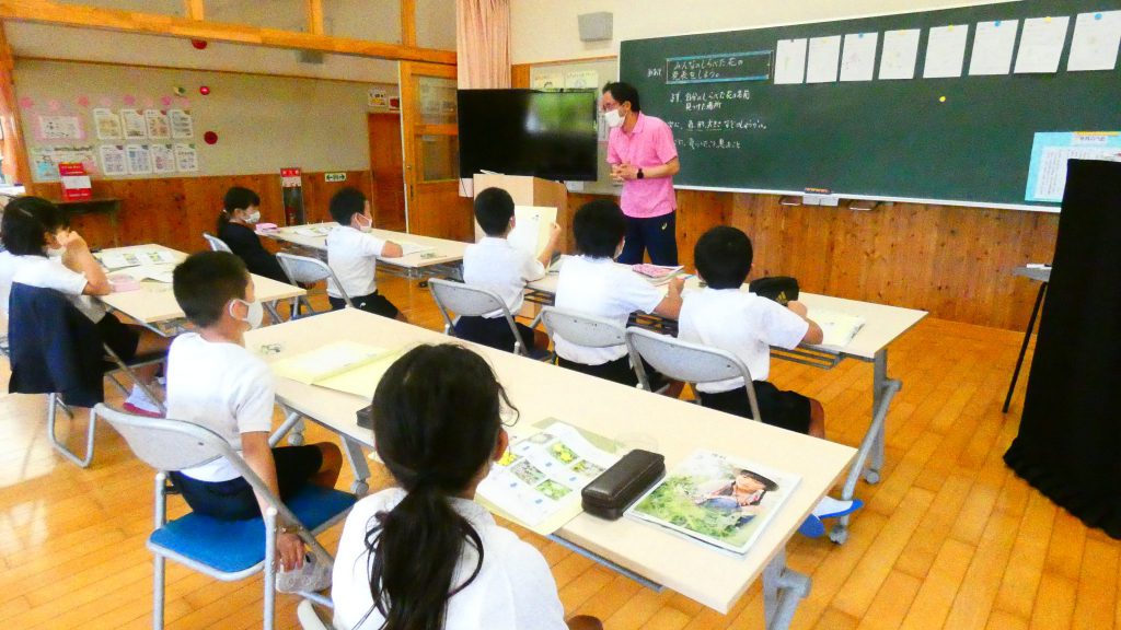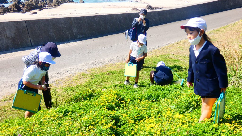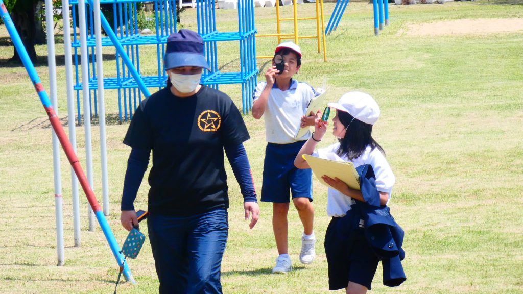 2年生の学習と3・4年生の学習の様子です。4年生は校庭で生き物探し。