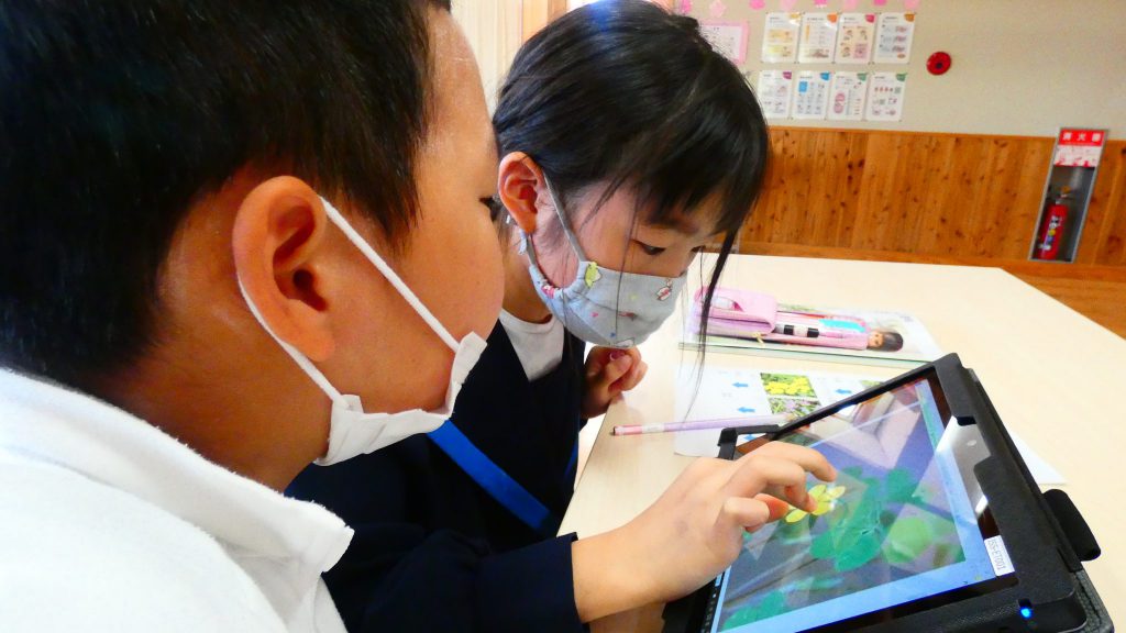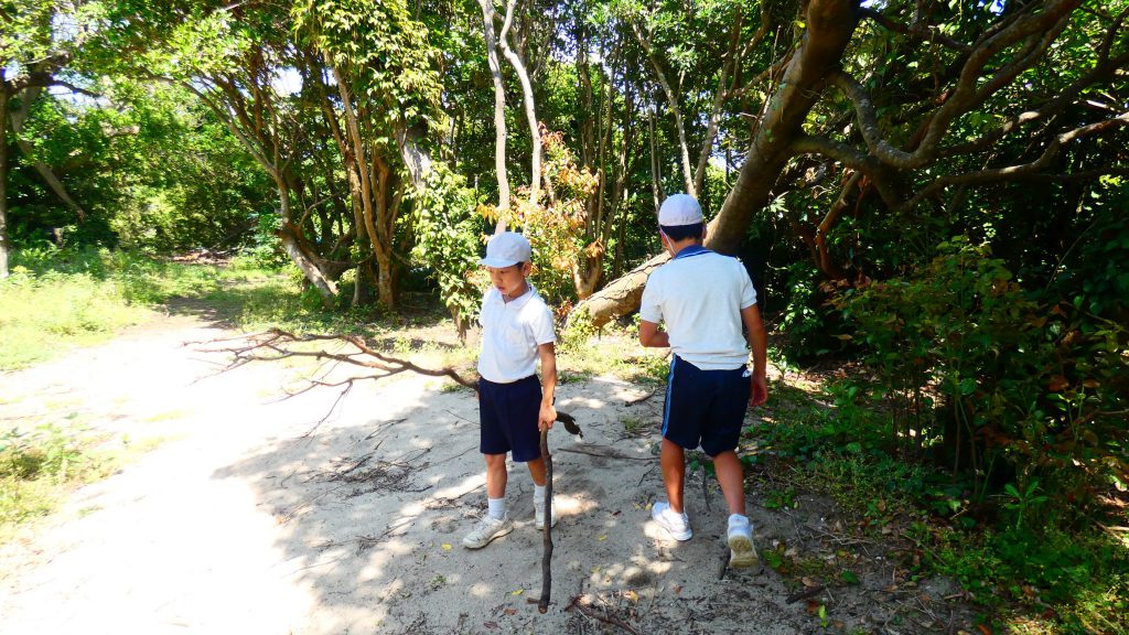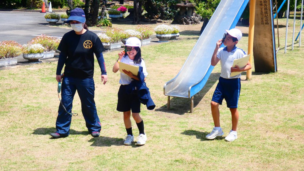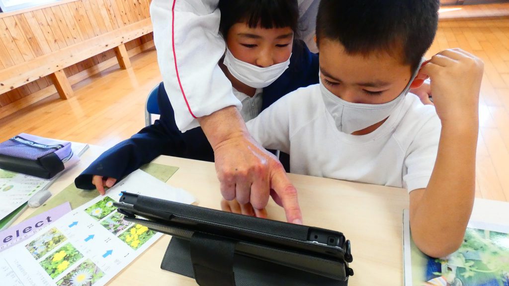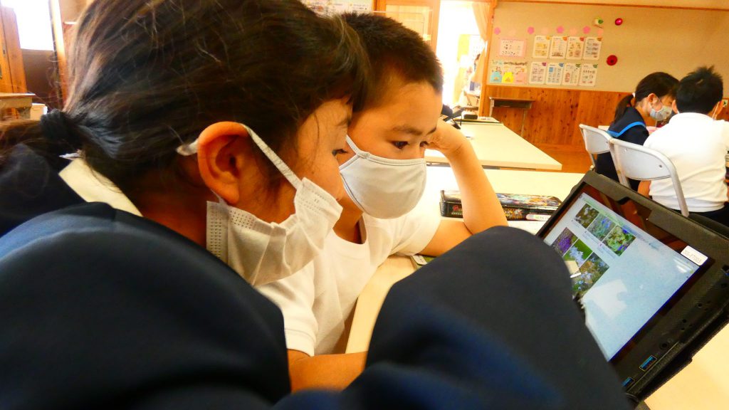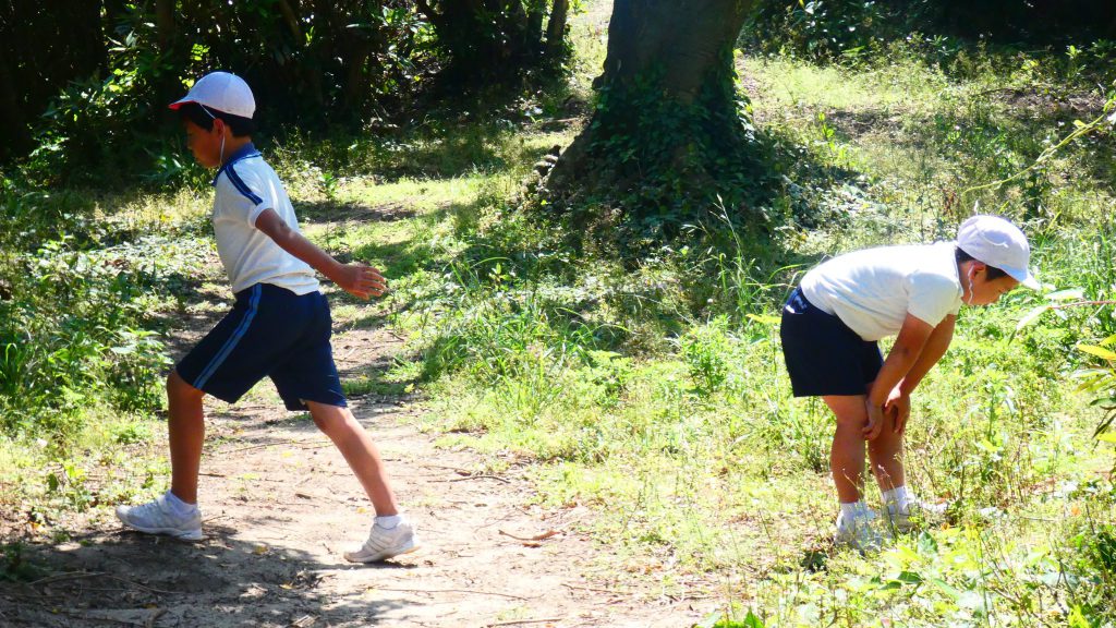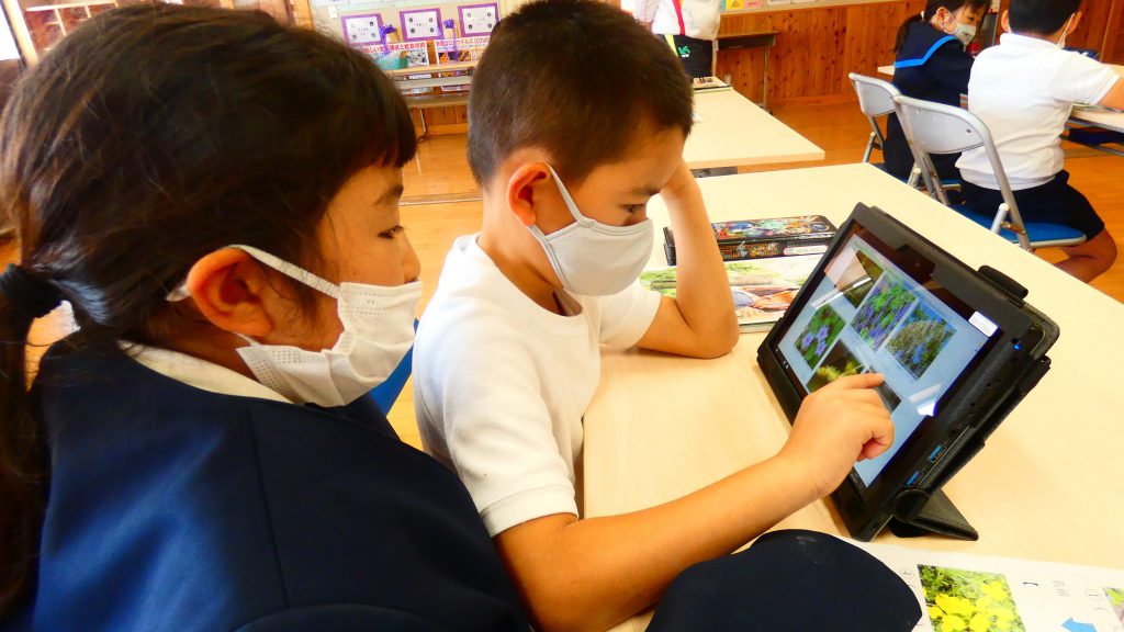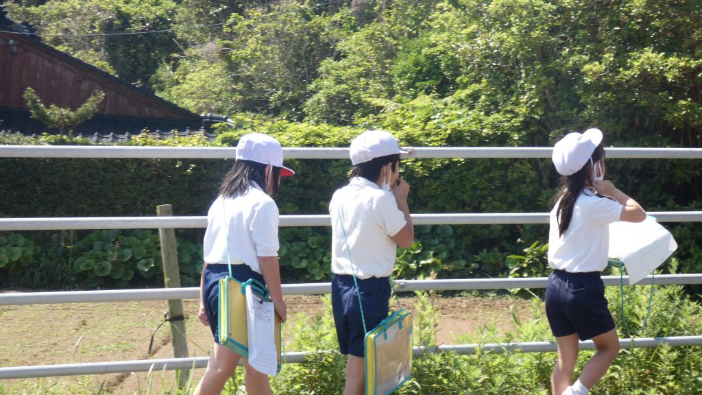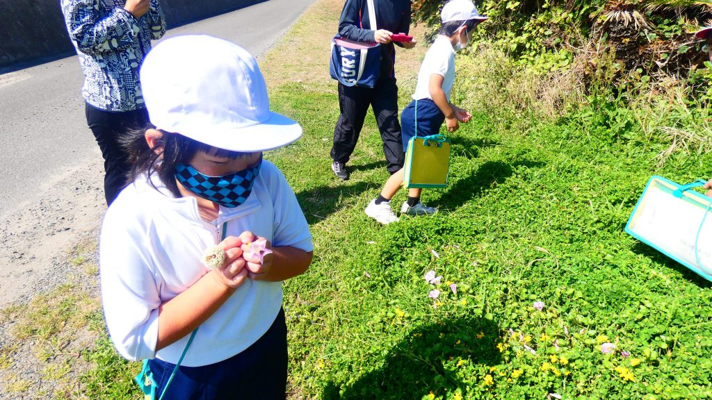 2年生の学習と3・4年生の学習の様子です。4年生は校庭で生き物探し。
