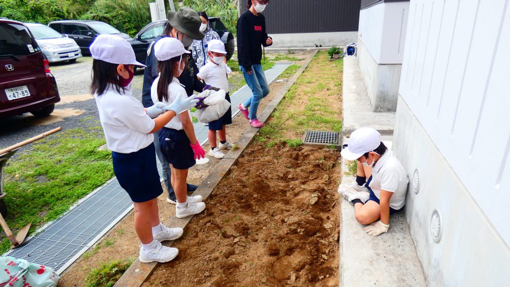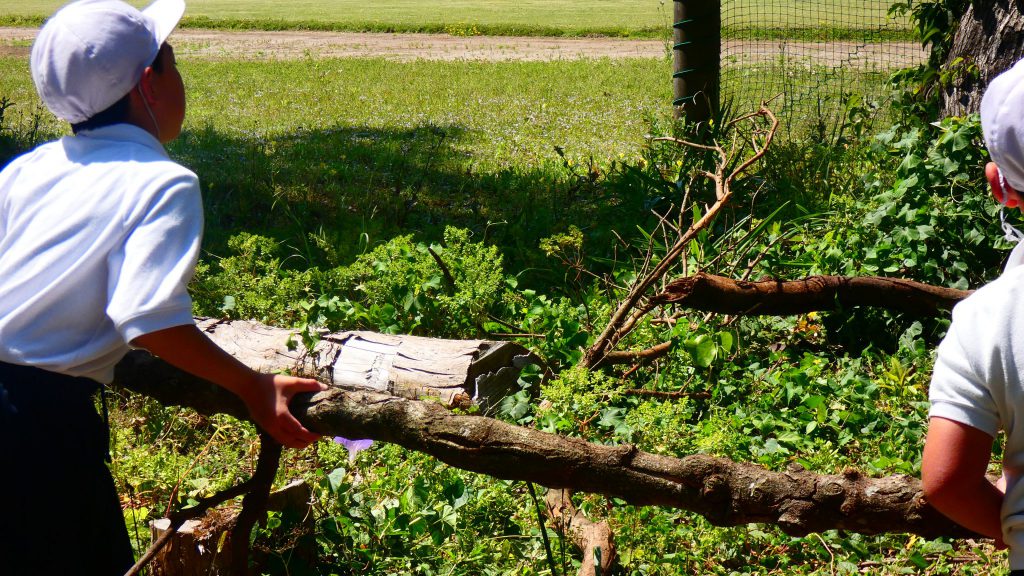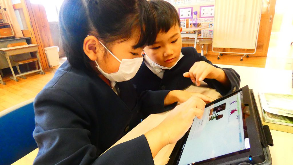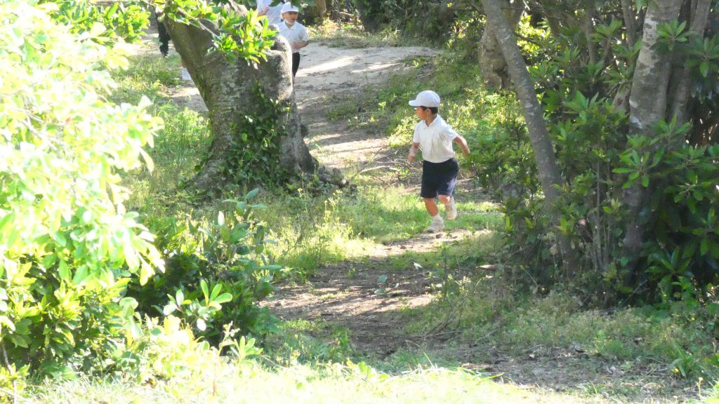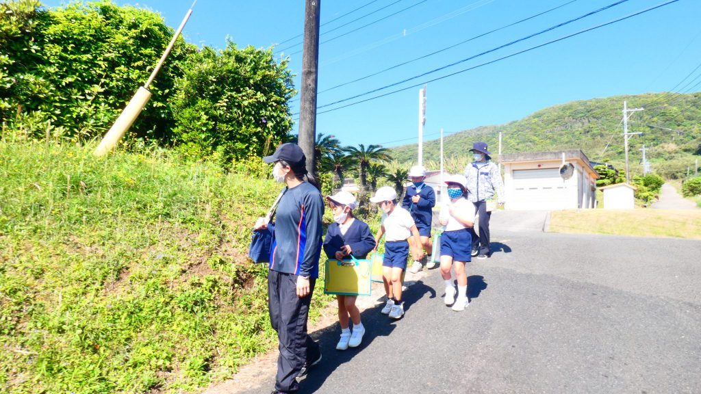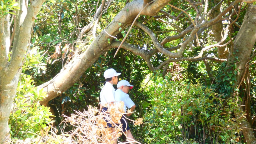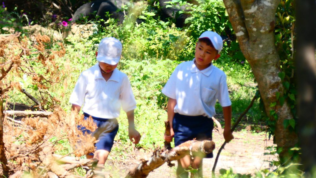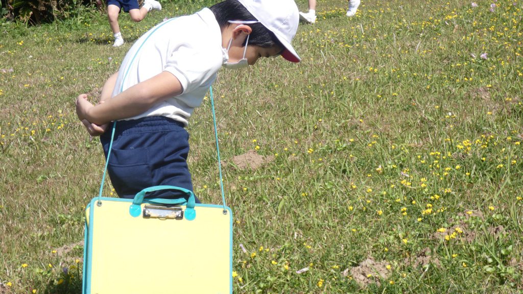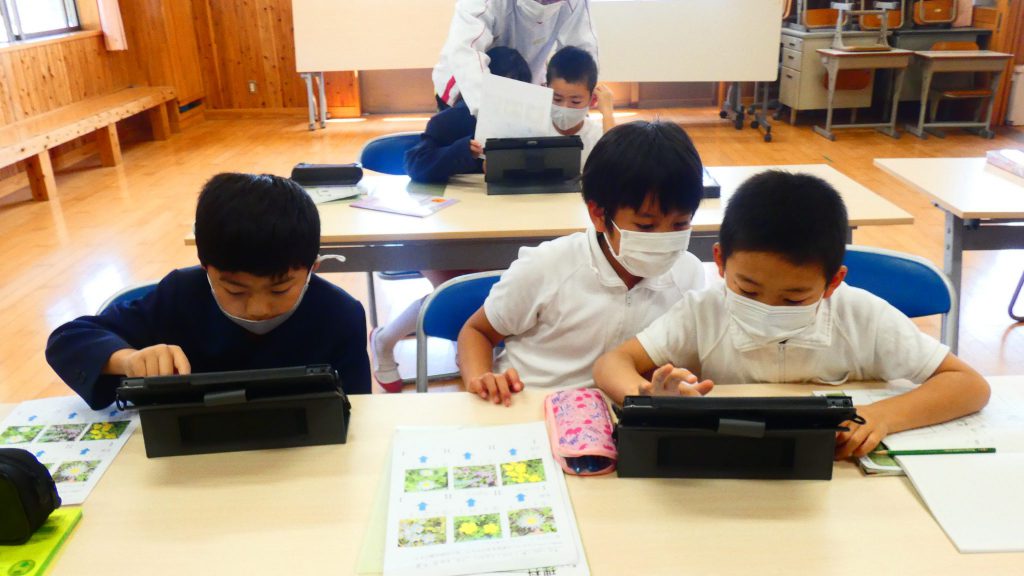 2年生の学習と3・4年生の学習の様子です。4年生は校庭で生き物探し。