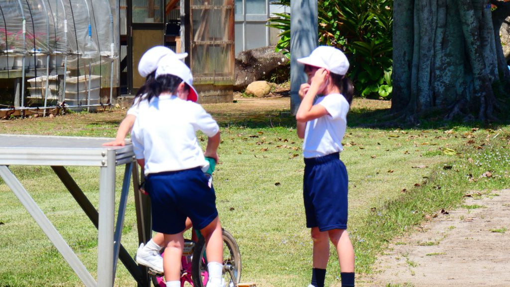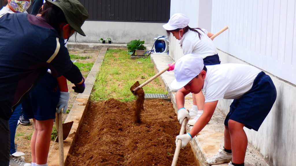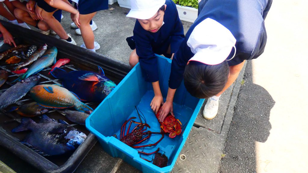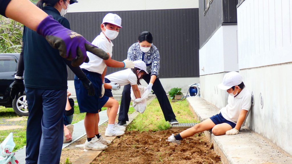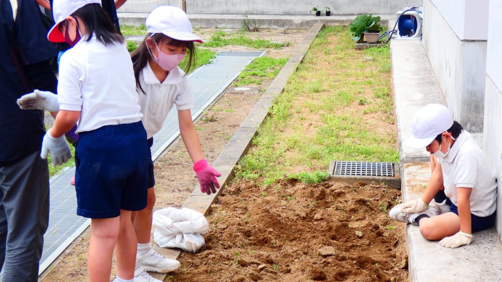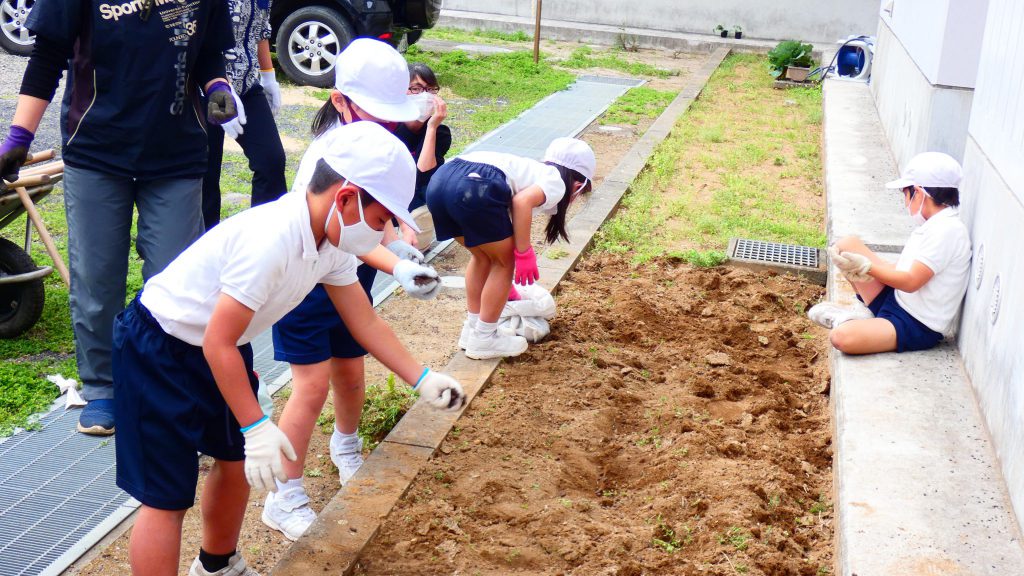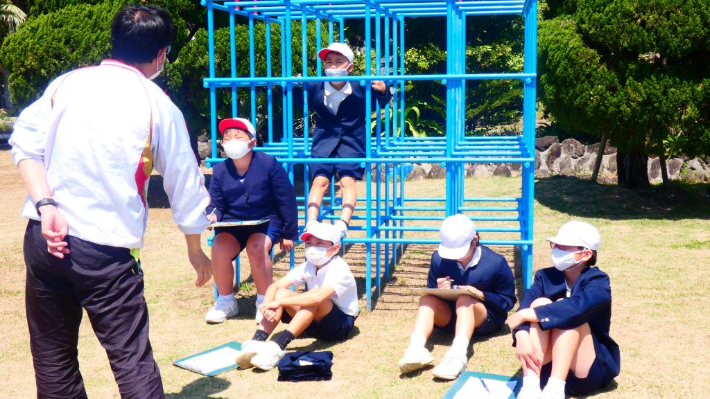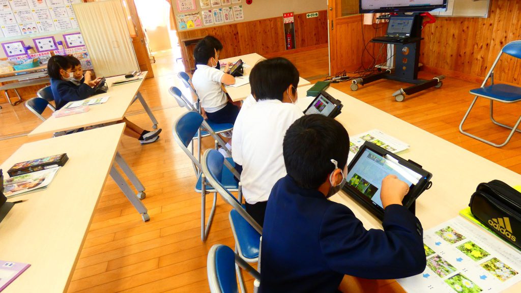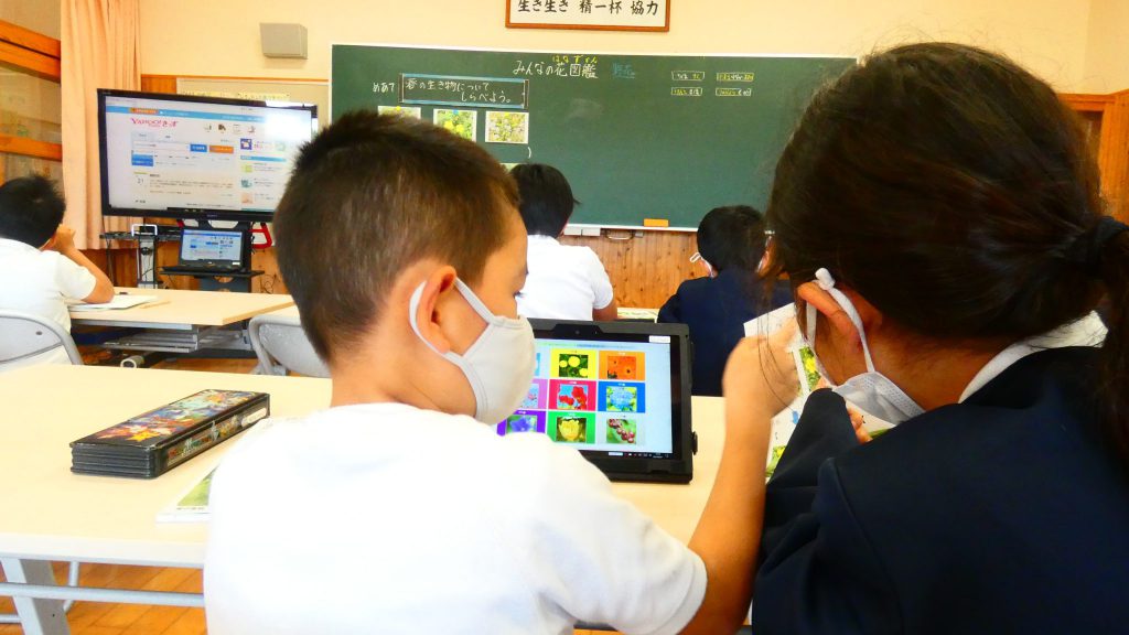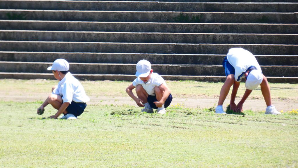 2年生の学習と3・4年生の学習の様子です。4年生は校庭で生き物探し。