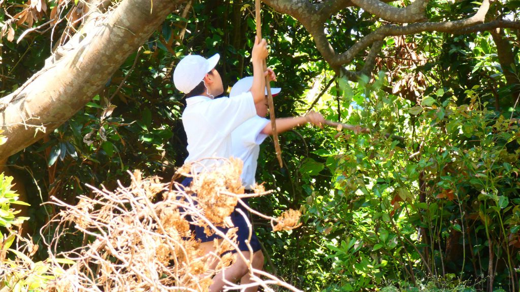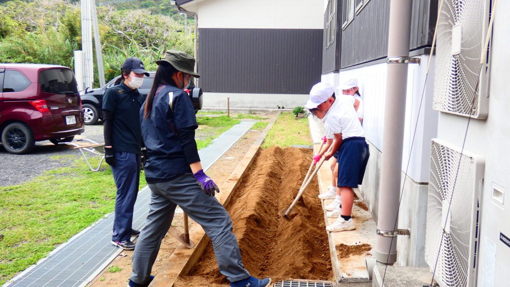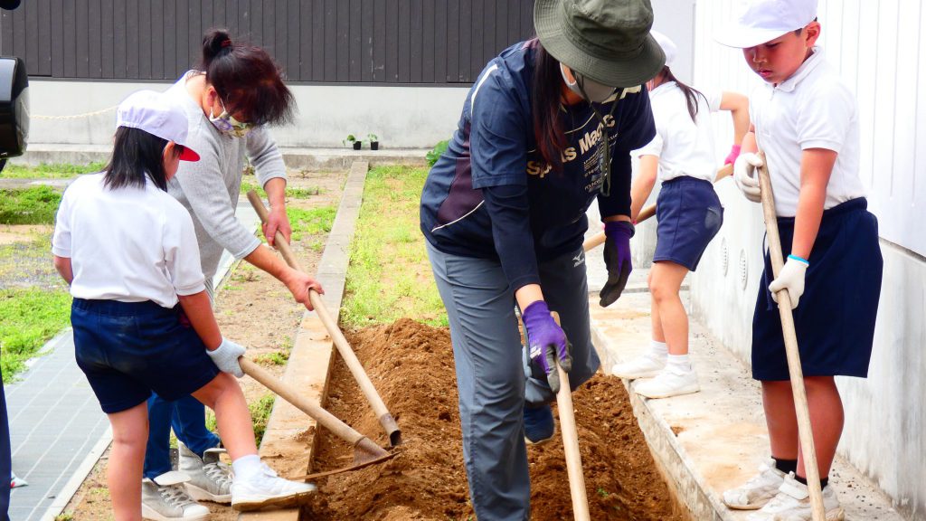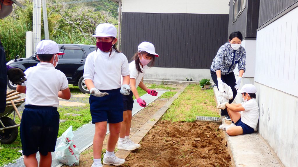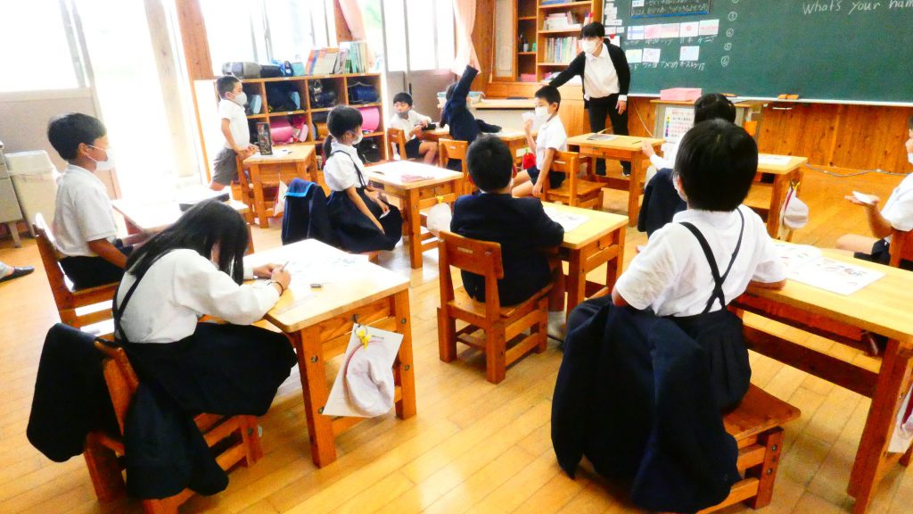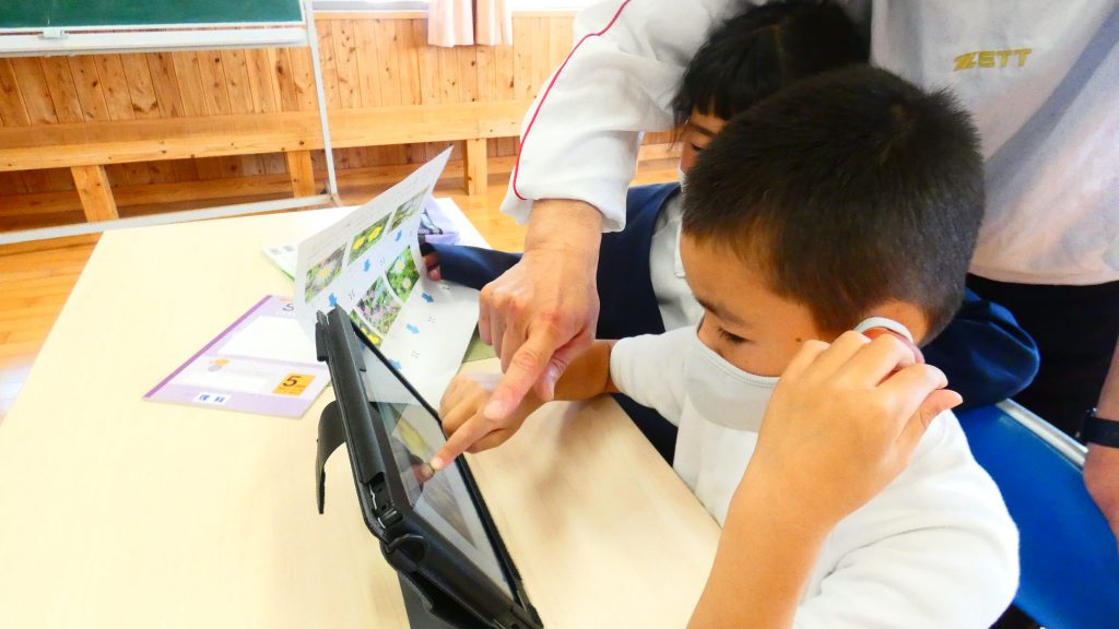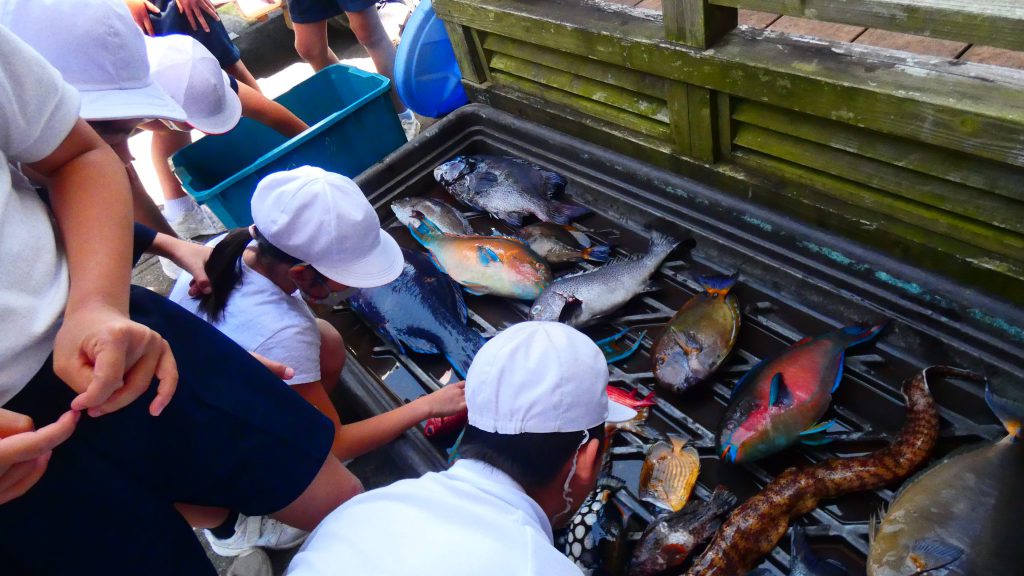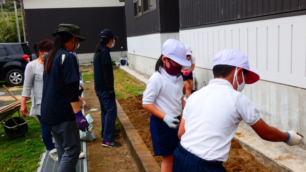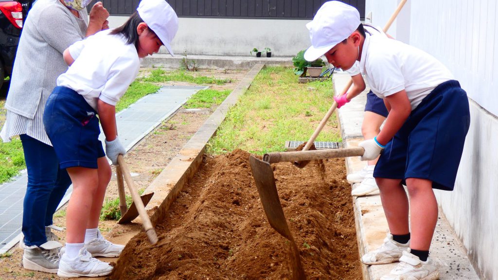 2年生の学習と3・4年生の学習の様子です。4年生は校庭で生き物探し。