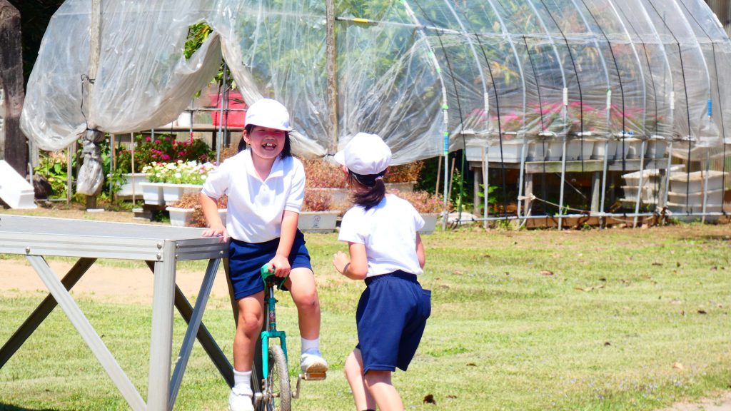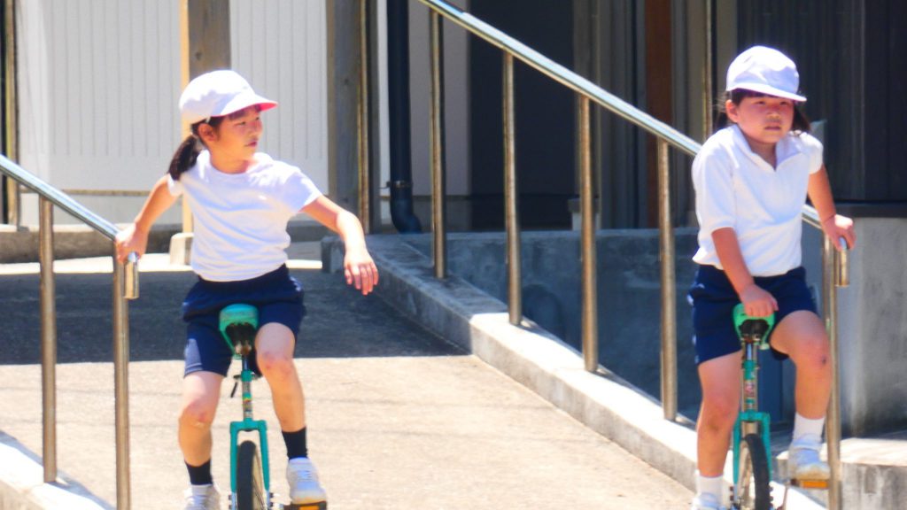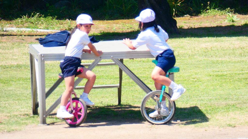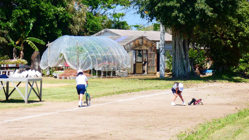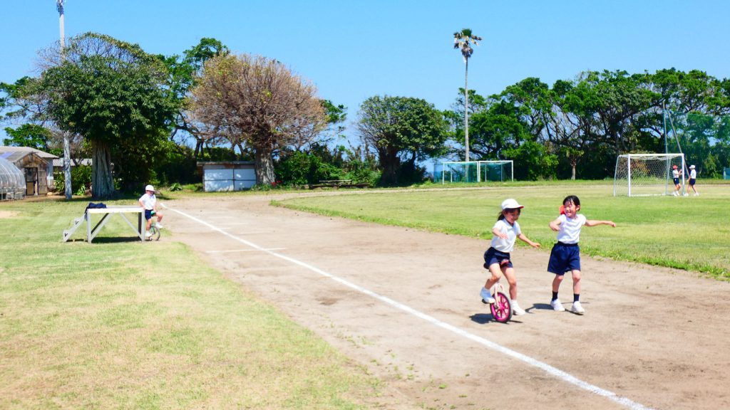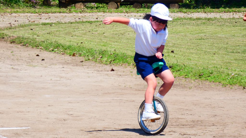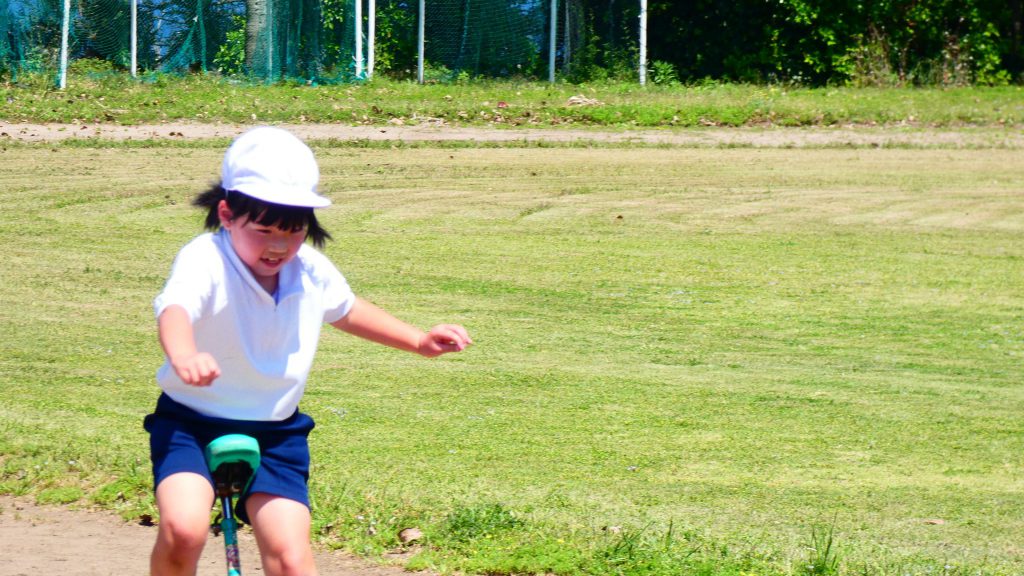 最後の連写の写真は2年生。補助具のところでよく3年生と練習していました。今日は,朝礼台のところからトラックを走る練習へチェンジ。バランスをとりながら15メートルほど進みました。これからどんどん距離が伸びると思います。1年生の先生と一緒に練習した成果が今も繋がっているようです。