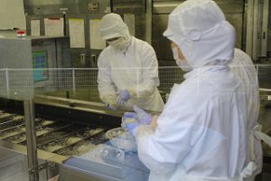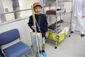 給食センターでは,上妻さんと松原先生に元気よくごあいさつ。