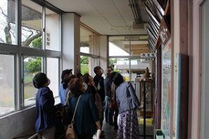 校内も御案内しました。机の大きさや教室の広さ,大型テレビなど当時とかなり変わっていることに驚いていらっしゃいました。校長室上に掲示してある他の年度の卒業写真を見ても話題が尽きません。