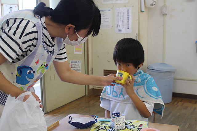ここからは,道具を片付ける子供と,苗に水をあげる子供と,分担作業でした。