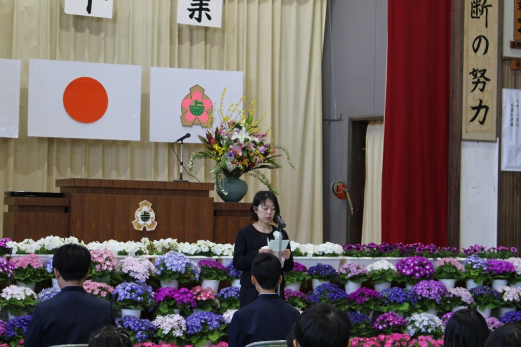 続いて,各学級の代表者によるあいさつがありました。