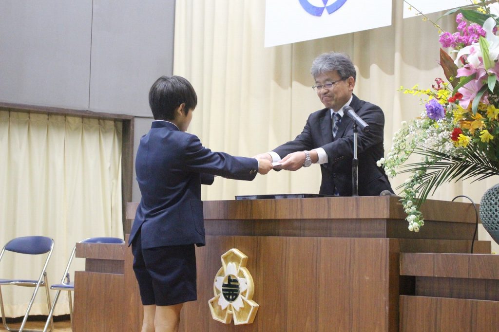 まず,各学年の代表者が校長先生から修了証書を受け取りました。