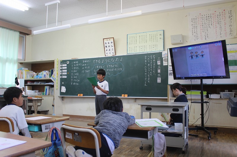 3・4年生は総合の学習で,農業体験(落花生作り)をしました。その際に,お世話になった地域の方に感謝の気持ちをこめて,学習のまとめを発表しました。地域の方の指導や協力がないとこの体験はできません。種まきから収穫まで,貴重な農業体験を本当にありがとうございました。
