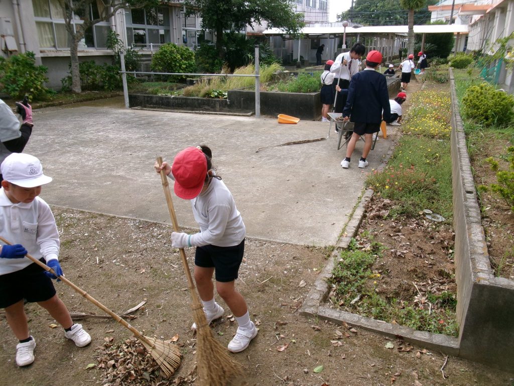 投稿日: 2025年10月29日2025年10月29日 投稿者: kunigami10月29日の「みどりの時間」本日の清掃時間は、みどりの時間でした。5・6年生は夏花をとり、学校園をきれいにしました。1~4年生は、中庭で落ち葉を集め、とてもきれいになりました。11月1日からの県民週間も近くなってきましたので、みんなできれいにしていきます。