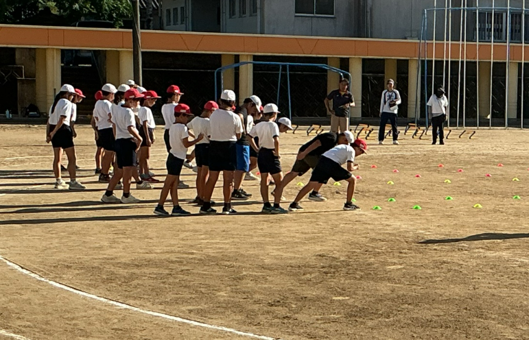 5・6年生を対象に「陸上教室」が開催されました。今回は、陸上競技の専門の先生と、地元高校の陸上部の選手の方を講師としてお迎えし、走り方の基本から幅跳び、ハードル、リレーまで、さまざまな種目を教えていただきました。
