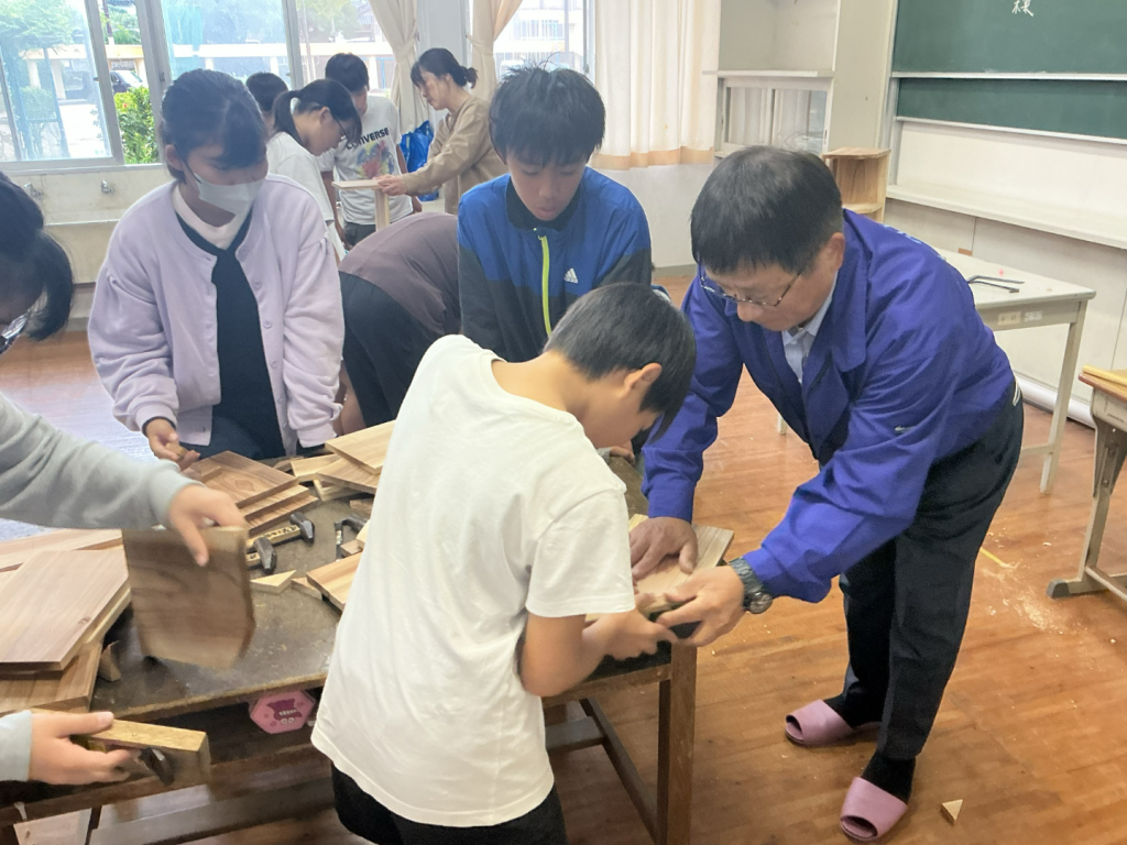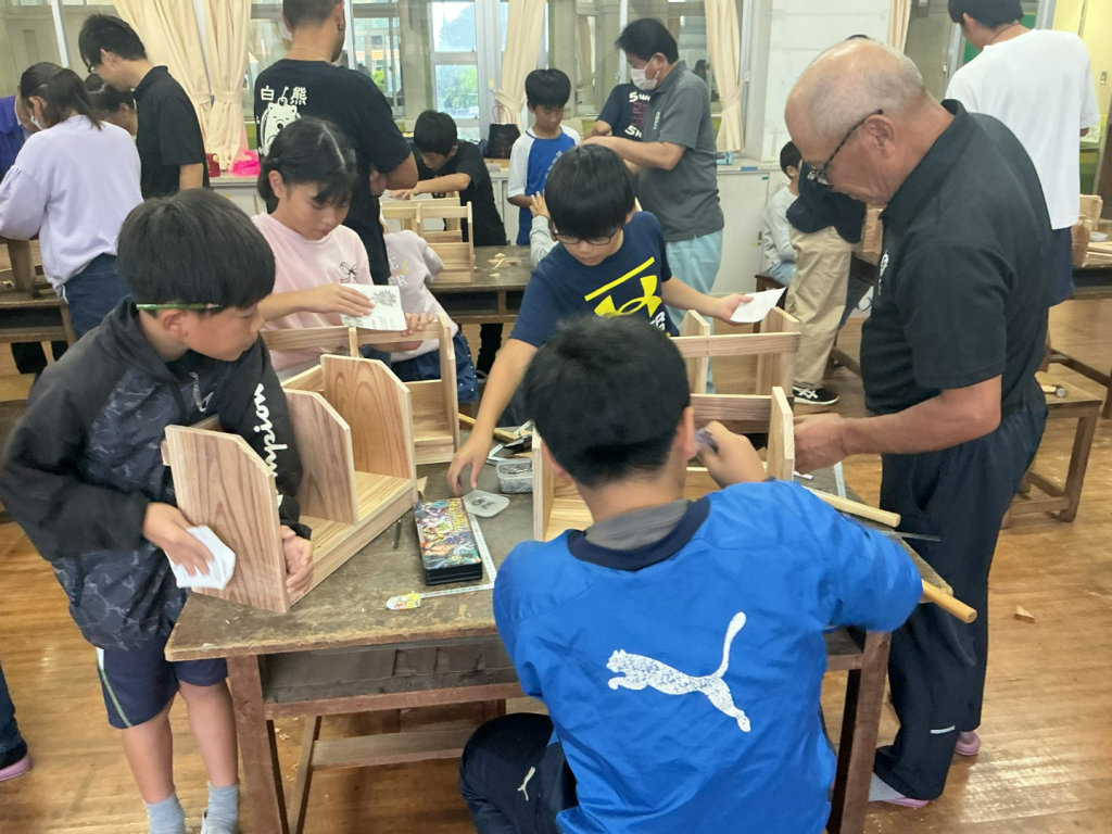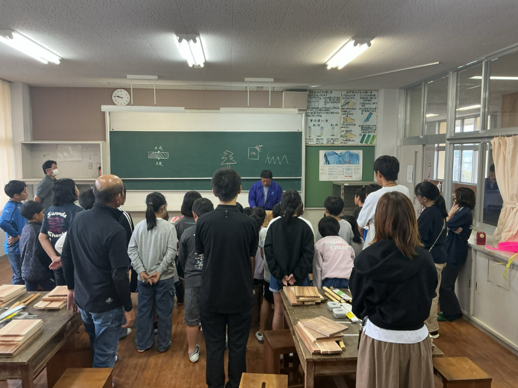 本日、5・6年生を対象に「ものづくり教室」を開催しました。講師として、プロの大工の方々をお迎えし、木工の魅力や道具の使い方について、実演を交えながら丁寧に教えていただきました。