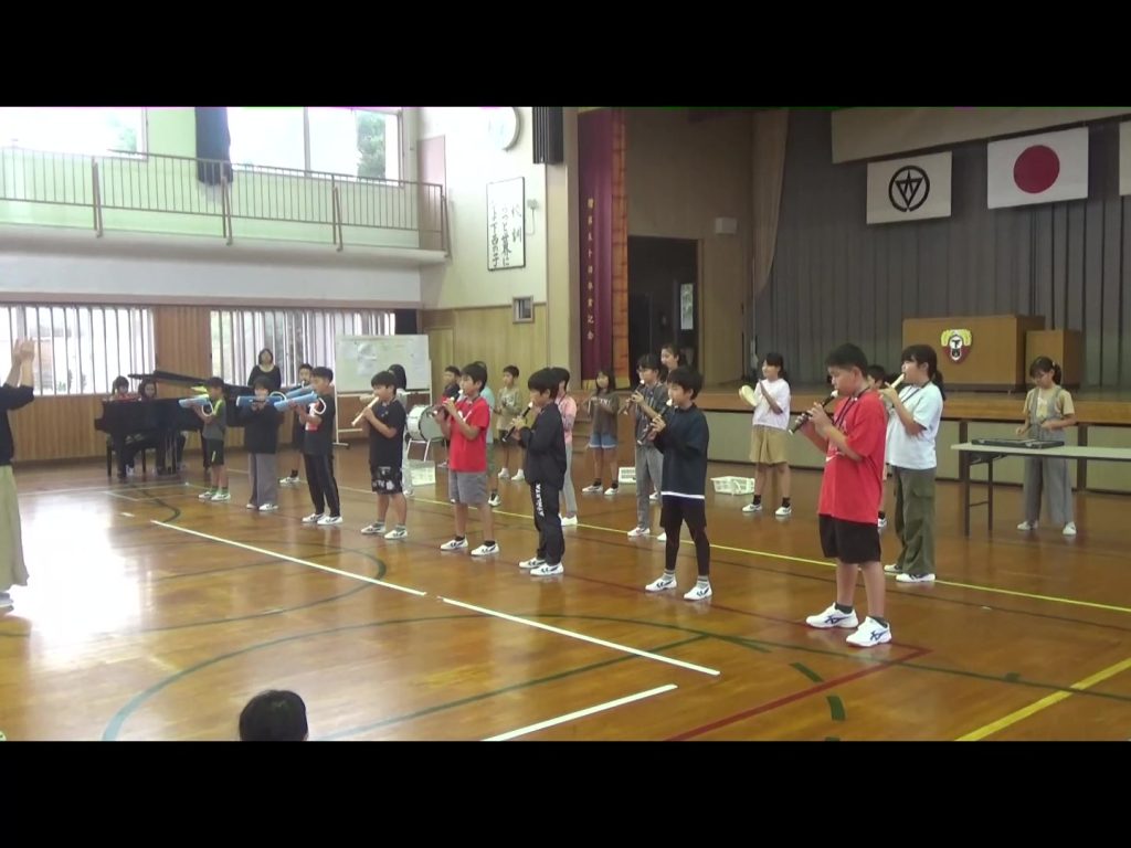 今日は、明日の市音楽祭に向けて、3・4年生が音楽集会で発表しました。