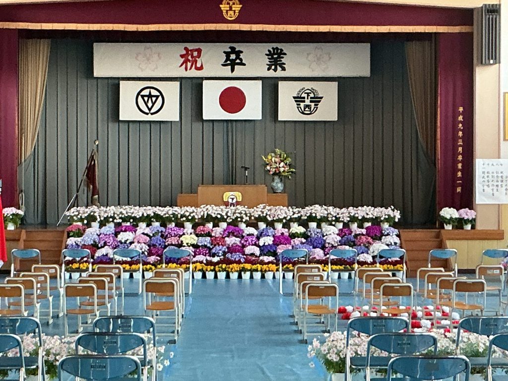 また、技師さんが心を込めて育ててくださった花々が会場を華やかに彩りました。色鮮やかな花に包まれ、卒業式を迎える準備が整いました。