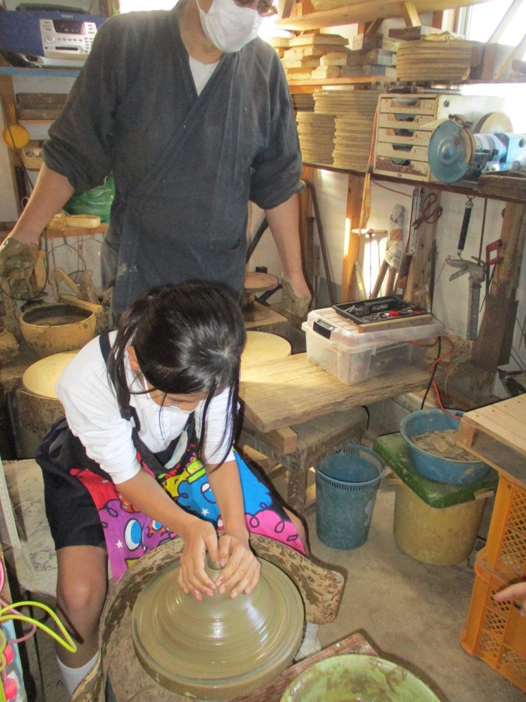 4年生は,市民会館・葉山窯に行きました。市民会館の地下には防災備蓄品がたくさん備えられている様子を見学しました。葉山窯では,焼き物の作られる工程を説明していただきました。また,ろくろ体験もさせていただき,子どもたちも喜んでいました。