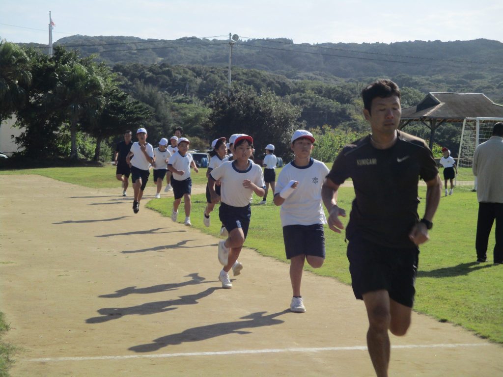 先月,とても天気がいい中で校内持久走大会が行われました。