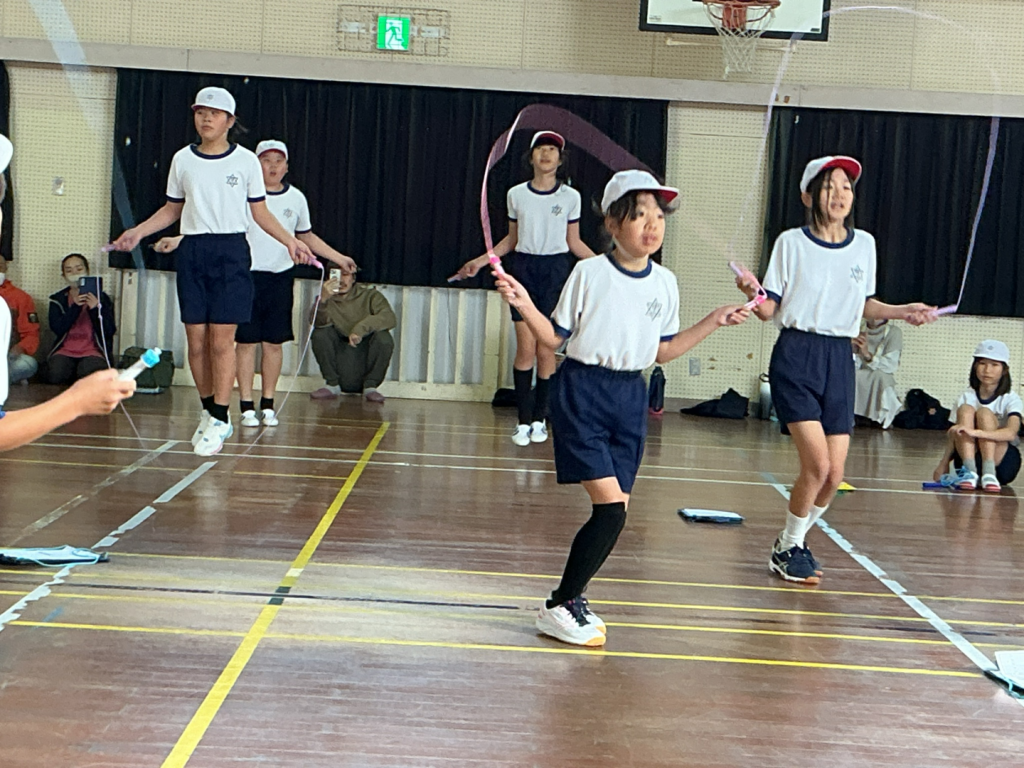子どもたちも,このなわとび大会でお互いに頑張る姿を応援したり,上級生の跳び方を見せてもらったりすることができました。また,今年は4年生の交差跳びで校内新記録132回も出ました。