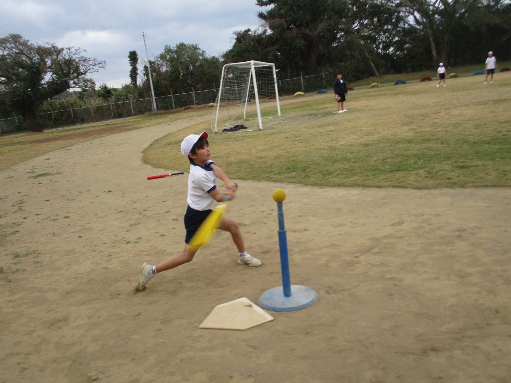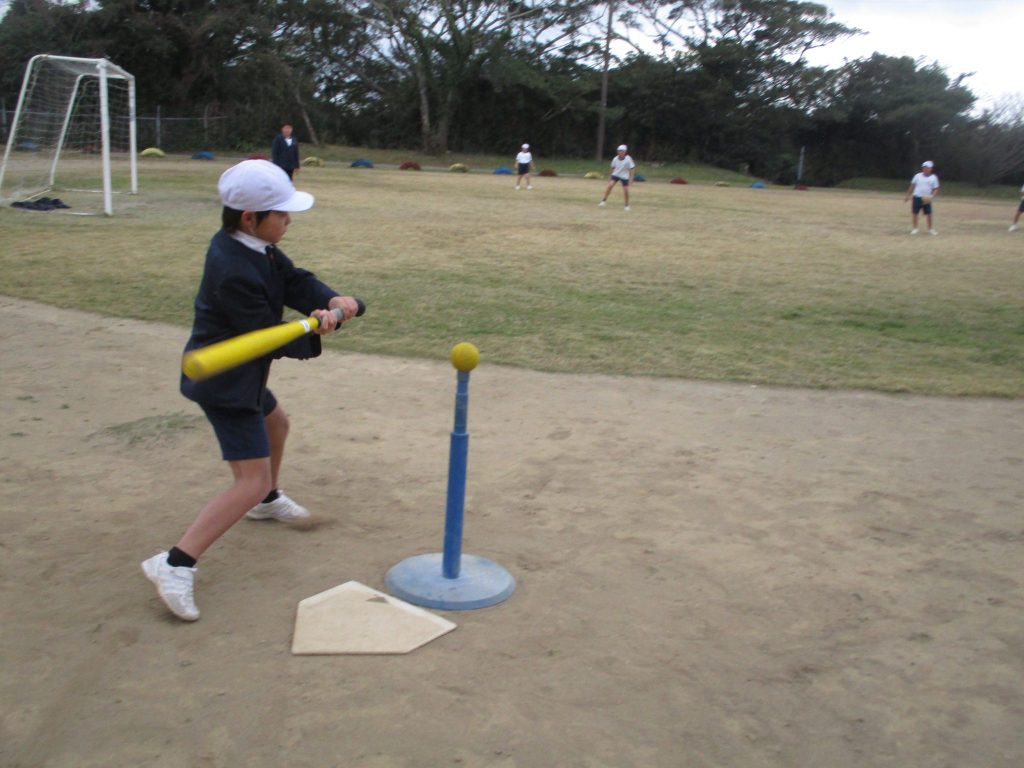 1月21日6時間目にクラブ活動がありました。スポーツクラブは外でティーボールを楽しみました。