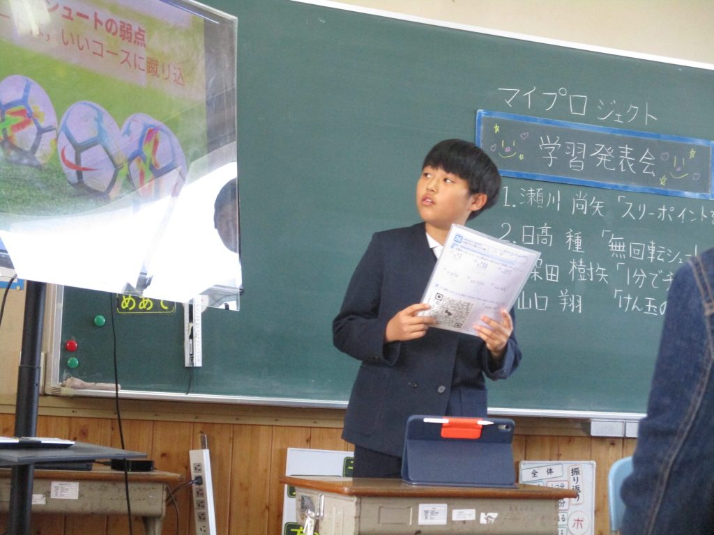 3年生から6年生は,2学期から準備を進めてきたマイプロジェクトを各教室で発表しました。マイプロジェクトとは,子供達が自分でテーマを決めて調べ,実際に作ったり実践したりしながら,新たに知り得たことや失敗から学んだことなどをまとめたものです。