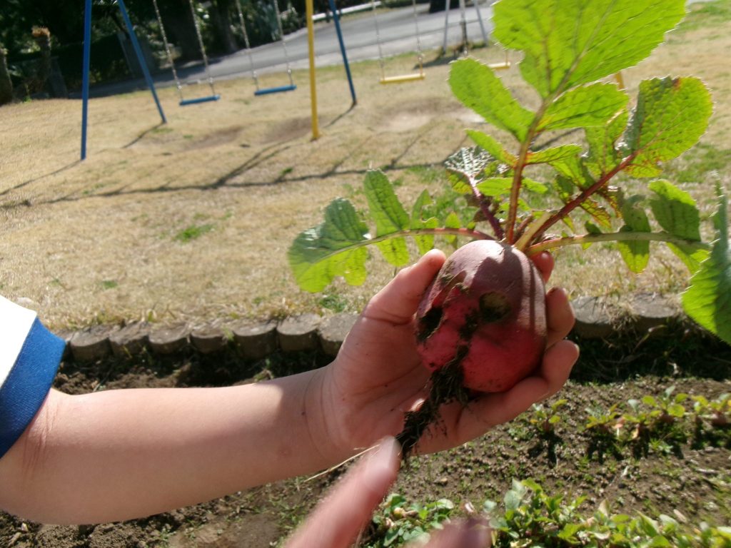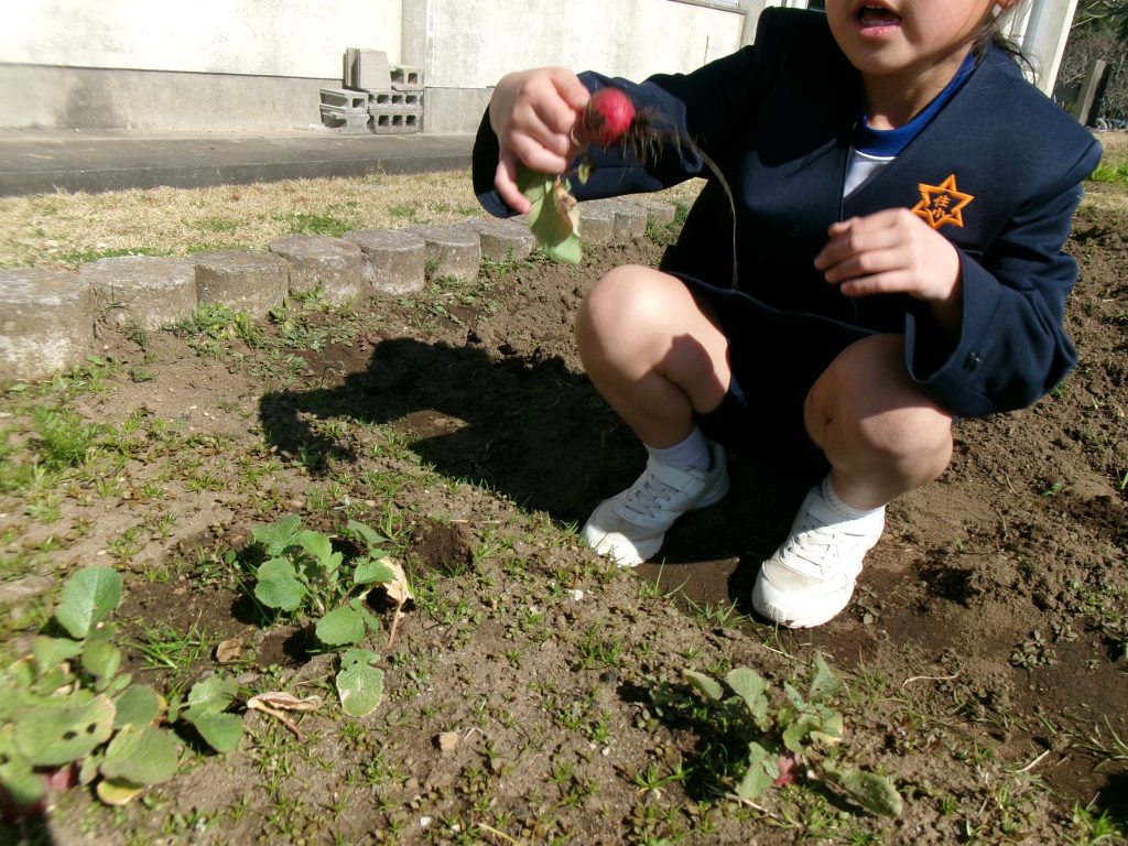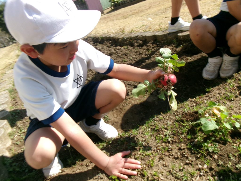 1,2年生で育てていたハツカダイコンをついに収穫しました。