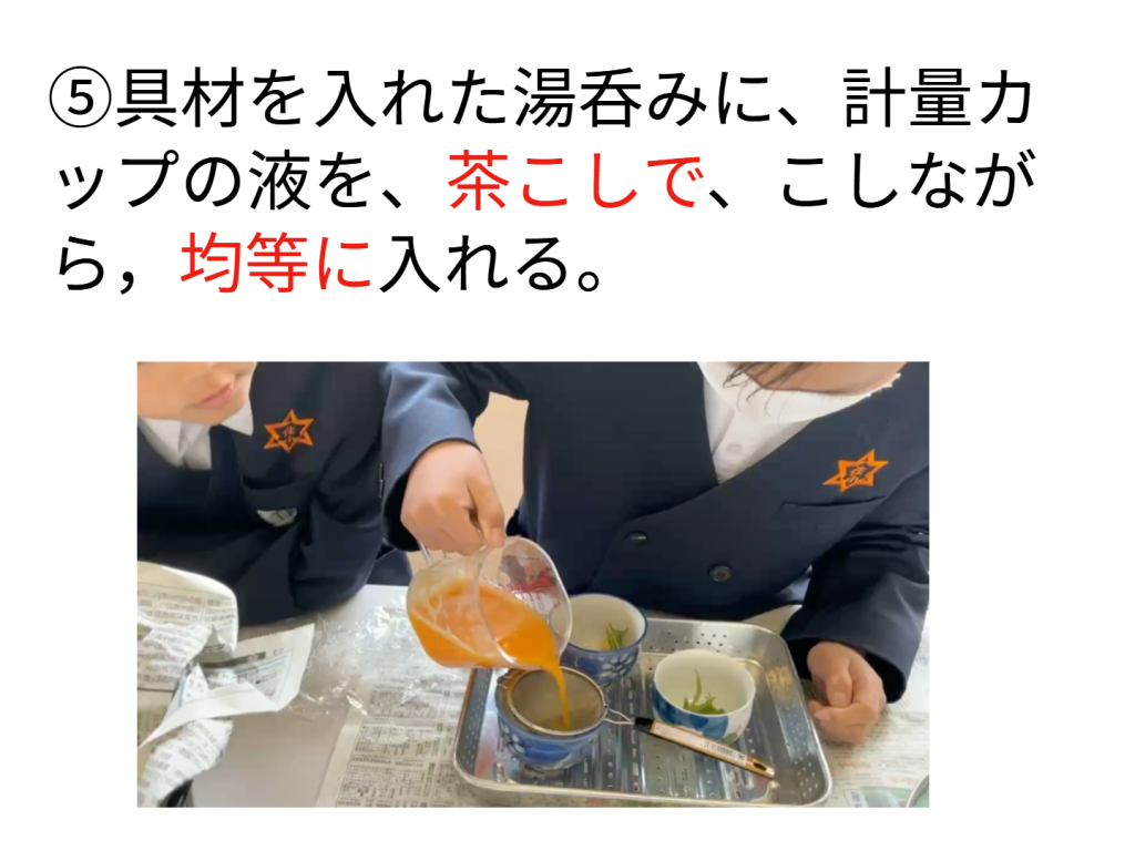 3月17日(火)5校時:簡単茶碗蒸しを作りました。